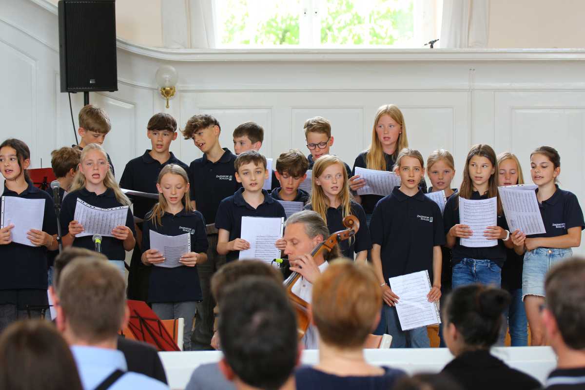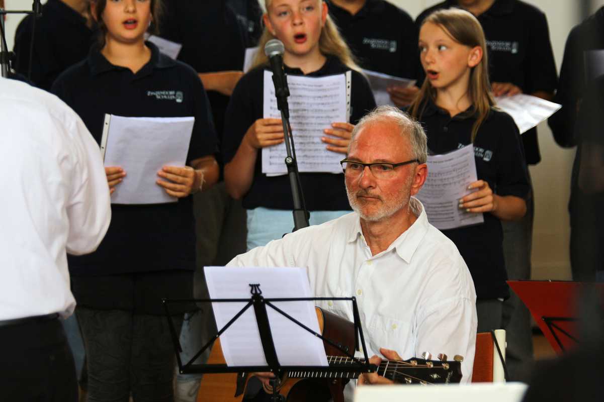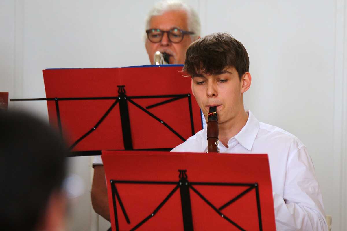 Die Siebtklässlerin Emmi Gilbert berührte mit Franz Liszts „Liebestraum Nr. 3 As-Dur“ das Publikum, und die beiden Abiturienten Matteo Mämpel (Klarinette) und Luis Peixoto Cordeiro (Gitarre) bewiesen als Duo mit Fritz Kreislers „Liebesleid“ einmal mehr, warum sie bei den Jugend-Musiziert-Wettbewerben zum Teil bis auf Bundesebene so erfolgreich sind und einen Tag zuvor im Abschlussgottesdienst mit Musikpreisen ausgezeichnet wurden.