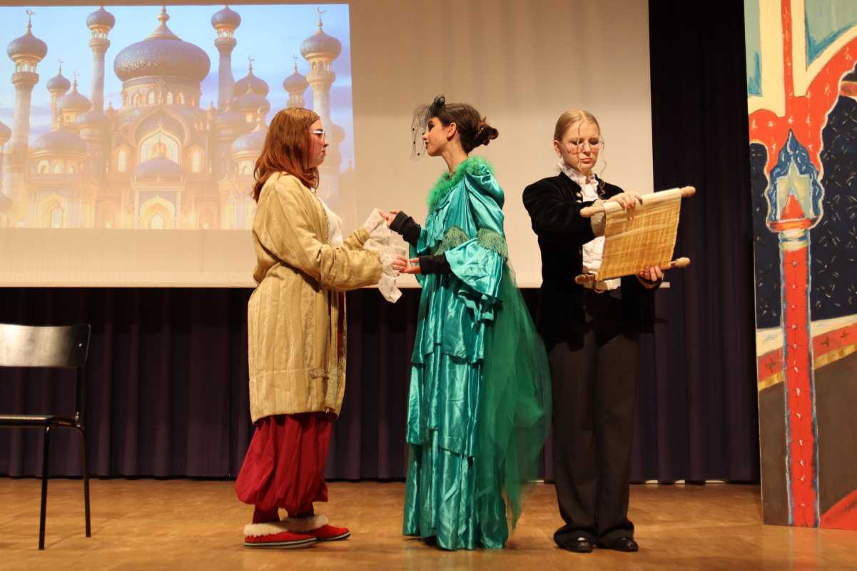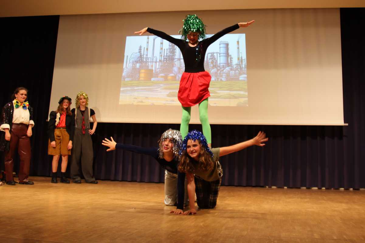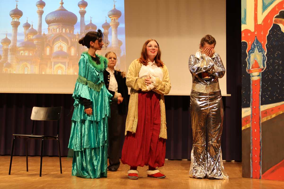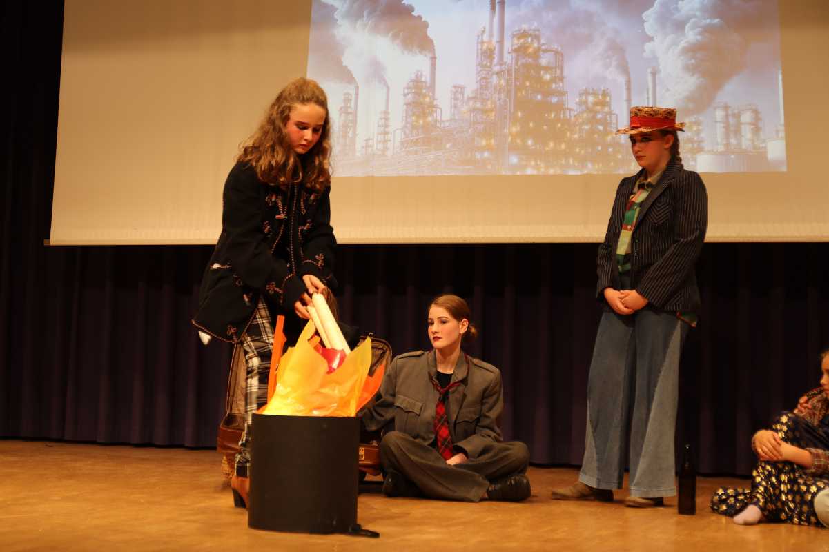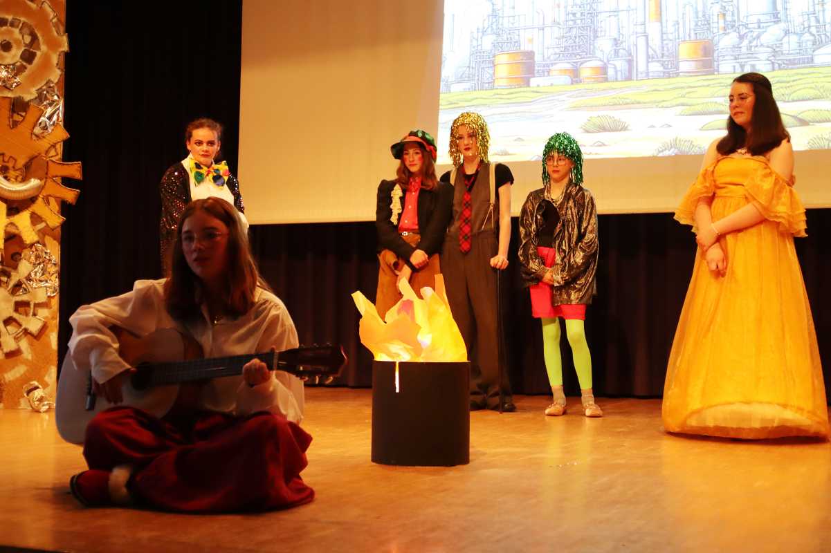 Unter der Leitung von Anna Saurer waren im Fach Kunst kreative Kulissen entstanden, die durch ihre einfache, aber wirkungsvolle Gestaltung beeindruckten die Handlung in jeder Szene unterstützten.
