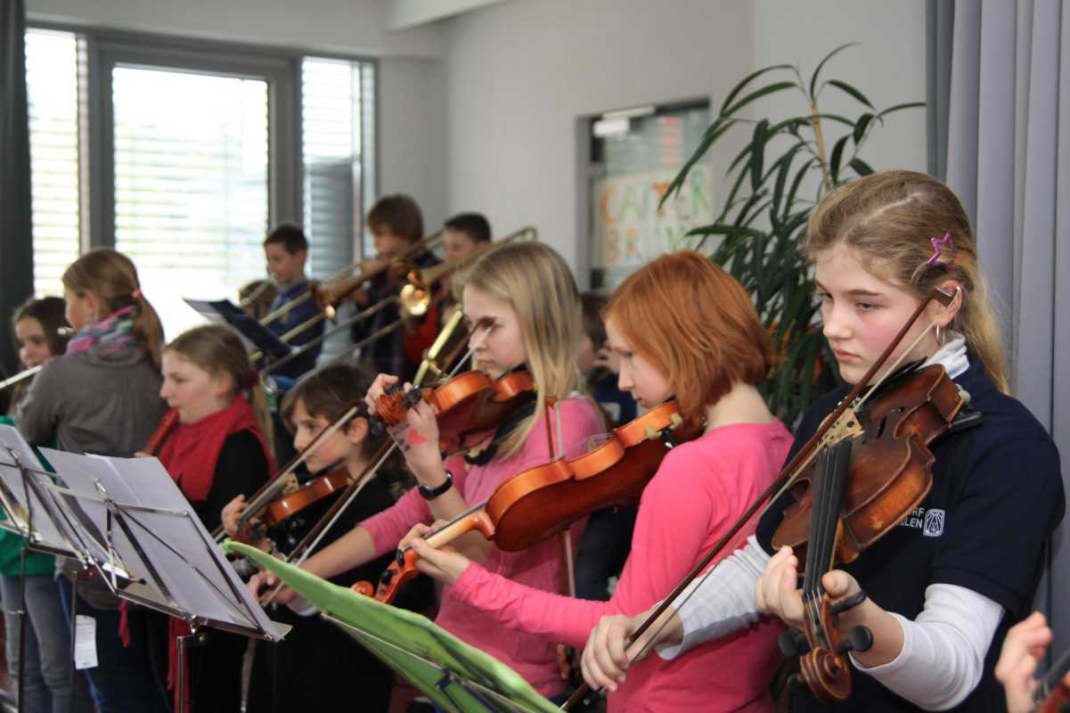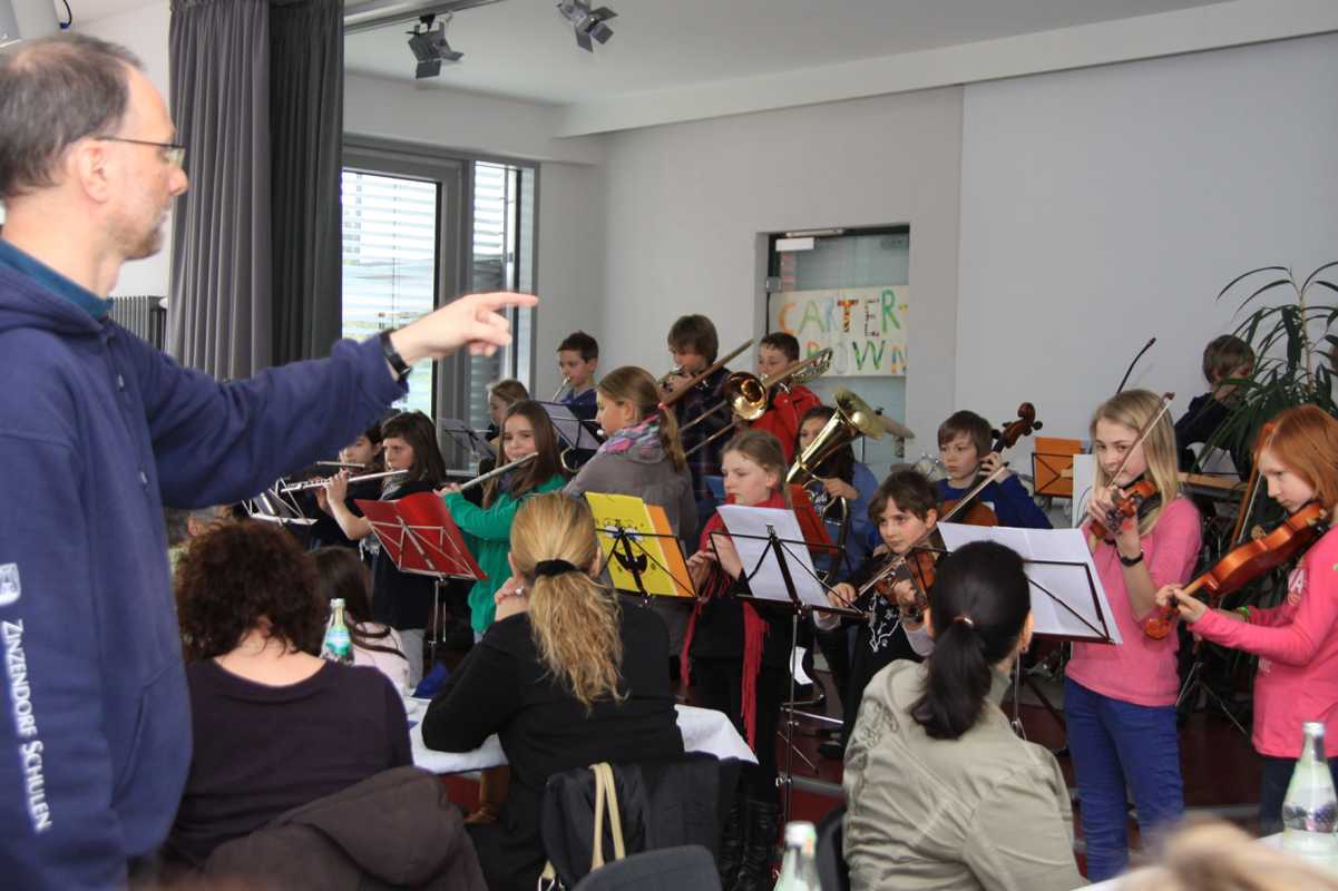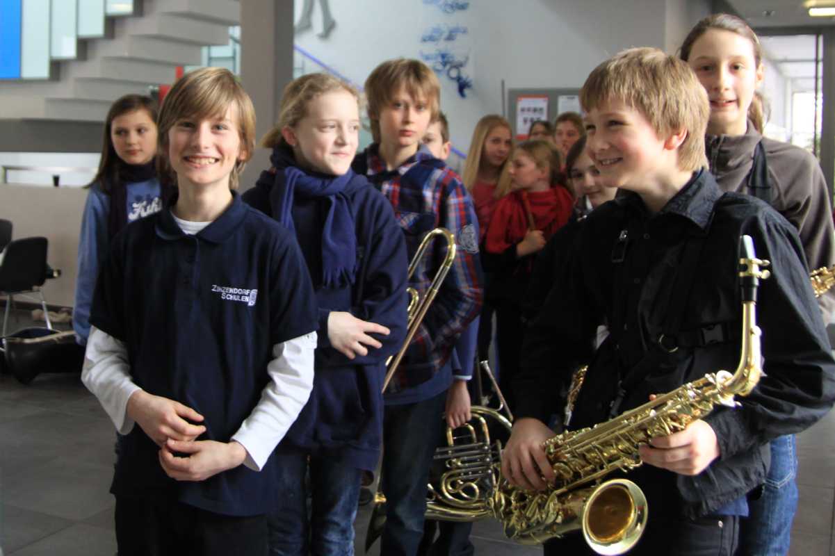 Innerhalb dieses pädagogischen Rahmens kann sich Bildung in allen Disziplinen entfalten. Neben den staatlichen Lehrplänen sind 25 verschiedenen Arbeitsgemeinschaften von Basketball über Segeln, Imkern, Schach, Golf, Theater bis zum Zirkus im Angebot. Auch Musik wird an den Zinzendorfschulen groß geschrieben, so dass nicht nur Orchester oder Chor in der Unterstufe obligatorisch sind, sondern auch beim Klassenmusizieren ganze Schulklassen beispielsweise Gitarre spielen lernen. Einige Kostproben aus dem musischen Bereich lockerten den mit Informationen prall gefüllten Nachmittag auf.