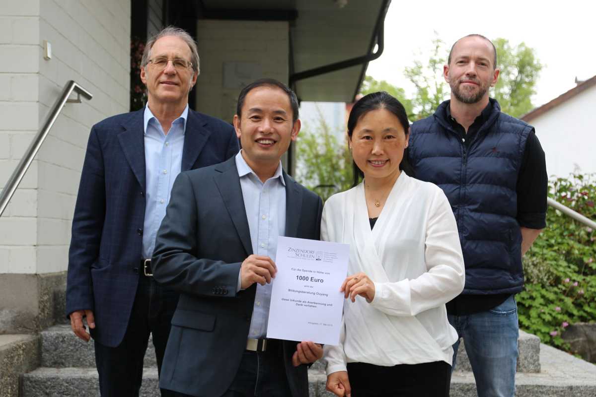 „Ich bin froh, dass die Schüler, die wir nach Deutschland vermitteln, im Internat der Zinzendorfschulen so gut betreut werden“, sagte Qiang Ouyang. Mit der großzügigen Spende wollte er seine Dankbarkeit ausdrücken.