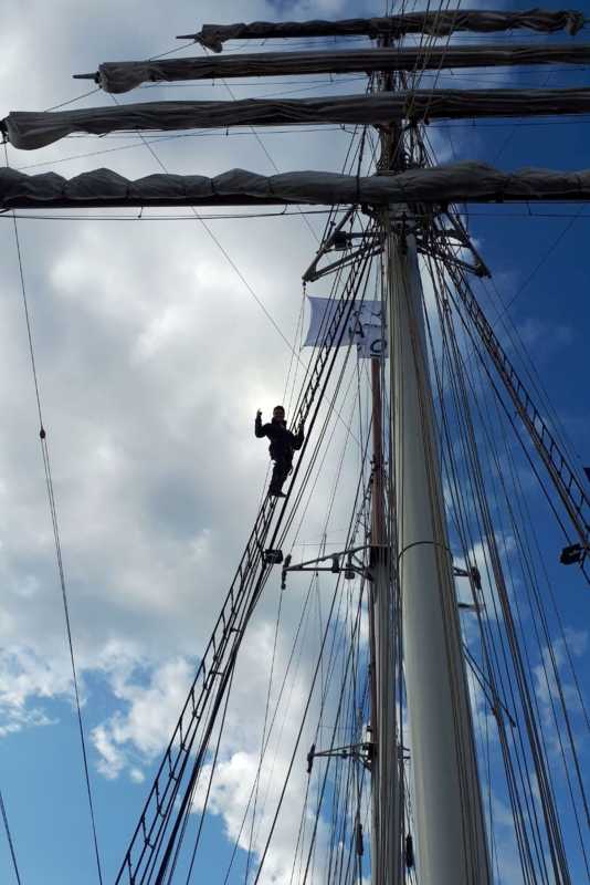Sie schläft in der Mitte eines kleinen, gemütlichen 3er-Stockbetts in einem Raum, den sie mit 59 anderen Schülern aus aller Welt teilt. „Wenn wir auf See sind, schmeißen uns die Wellen aus unseren Betten oder wir sind damit beschäftigt, an Deck an den Schotleinen zu ziehen, um das Boot zu stabilisieren.“ Pausen oder Privatsphäre gebe es nicht und das Leben an Bord ist ganz schön anstrengend, „aber trotzdem genieße ich jede einzelne Minute.“