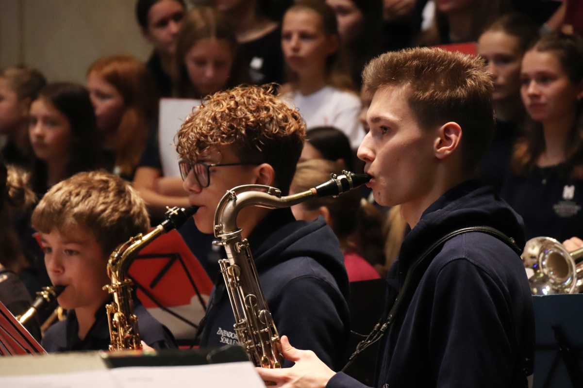 Ein so großes, schulübergreifendes Projekt hat es in der Bildungsgeschichte der Schulen noch nicht gegeben: 58 Schülerinnen und Schüler, Lehrerinnen und Lehrer, Ehemalige sowie Freunde der Zinzendorfschulen aus Schulorchester, Blasorchester und Jazz-Pop-Band sind unter der musikalischen Leitung der Musiklehrer Br. Heil und Br. Michel nach Herrnhut gereist, um mit Schülerinnen und Schülern der dortigen Zinzendorfschulen eine Woche lang gemeinsam zu musizieren.