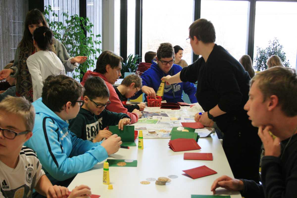 Doch auch die Kultur kam nicht zu kurz: An verschiedenen Bastelständen konnten die kleinen und großen Besucher Weihnachtskarten herstellen, Schneemänner und Tannenbäume kreieren. Im Rhythmikraum ertönte nicht nur die „Weihnachtsbäckerei“. Auch andere bekannte Weihnachtslieder wurden gesungen, begleitet von Gitarrenklängen und Rasseln. Einen literarischen Beitrag zur Weihnachtsstraße bildete ein Bilderbuch von Astrid Lindgren: Weihnachten im Stall, das ein Schüler abwechselnd zwischen den Liedern vorlas.