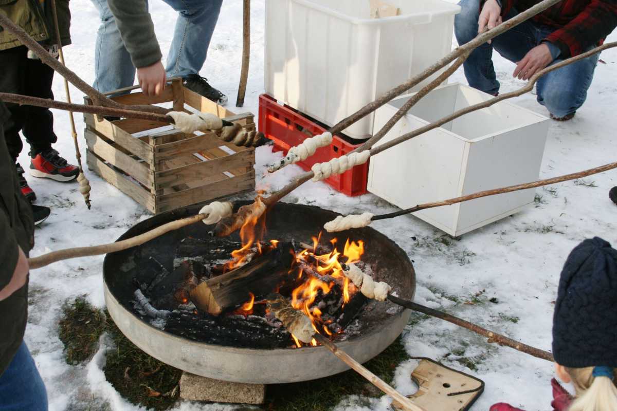 Mit selbstgebackenen Waffeln und Punsch war kulinarisch für die Besucher der Weihnachtsstraße gesorgt. Das Wetter spielte mit, so dass es außerdem Stockbrot am Feuer gab.