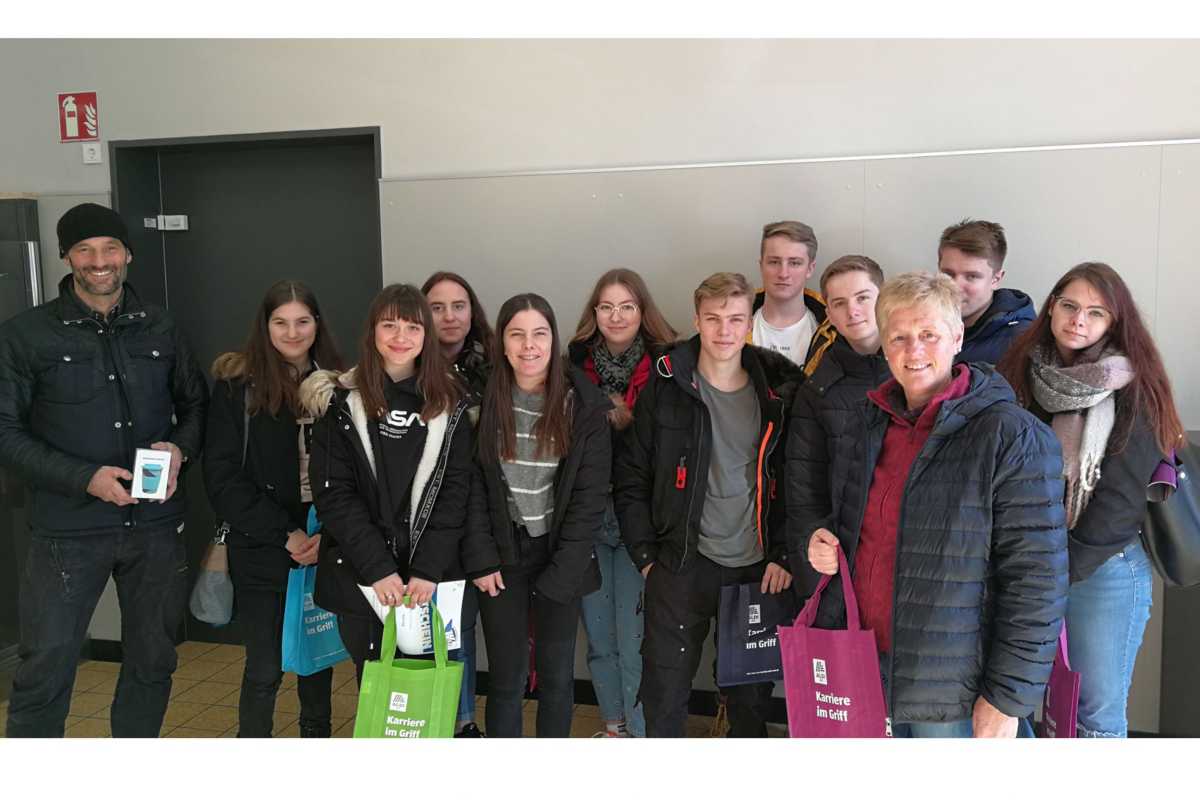 Früher oder später ist die Schulzeit vorbei und dann geht es darum, sich für einen Beruf zu entscheiden. Um schon mal einen Überblick über die verschiedenen Möglichkeiten zu bekommen, waren die Schülerinnen und Schüler der Klasse BFH/W1 der Berufsfachschulen mit Sr. Jerke und Br. Moll bei der Firma ALDI. In einer Filiale in Villingen, in der für drei Wochen die Aldi-Auszubildenden im 3. Lehrjahr selbständig die Führung übernommen haben, durften die Jugendlichen einen Schüler-Info-Tag hinter die Kulissen schauen.