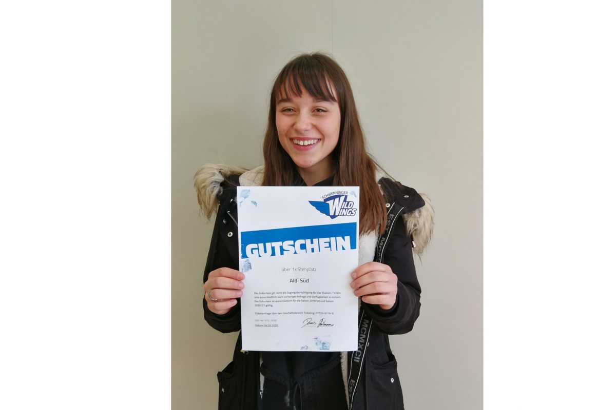 Anschließend konnten die Schüler an einem Quiz teilnehmen, bei dem Anna eine Karte für die Wild Wings gewonnen hat. Bevor es wieder zurück nach Königsfeld ging, konnten sich alle bei Getränken und Brezeln stärken und bekamen ein kleines Werbepräsent.