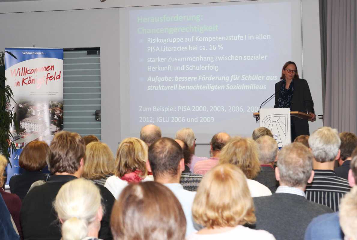 Jede gute Schule habe drei Ziele, so die Erziehungswissenschaftlerin: Leistung auf hohem Niveau, Chancengerechtigkeit und Wohlbefinden. Wie diese Ziele erreicht werden können, regte sie anhand internationaler Beispiele an.
