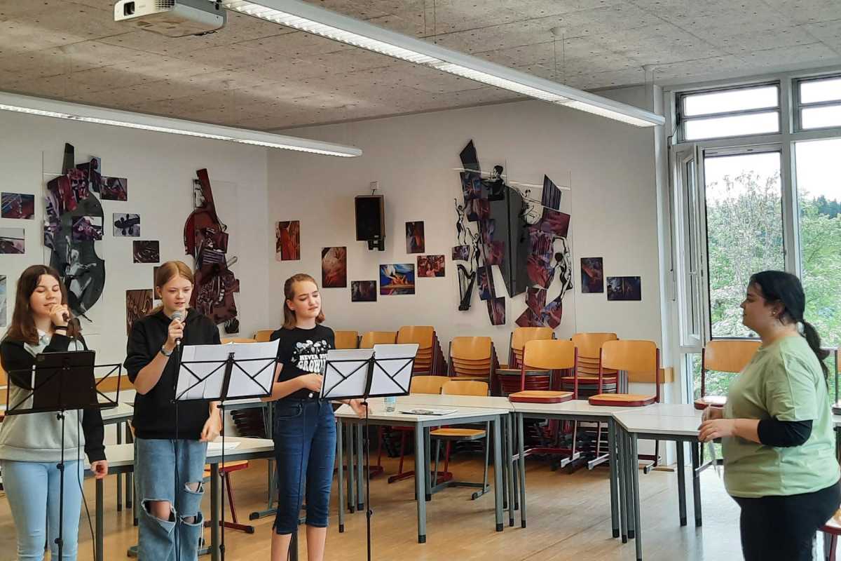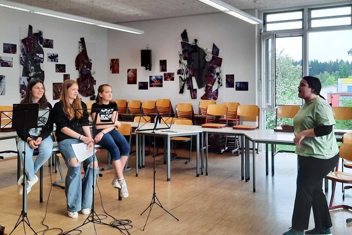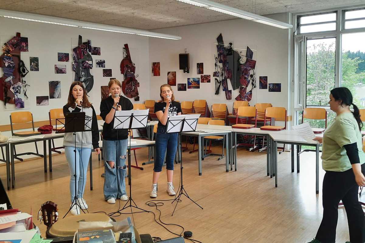 Vor ein paar Wochen bekamen die Sängerinnen der Jazz- und Popband ein Coaching von Demira Seubel, der Sängerin der Zinzendorf Jazz-Combo. Da diese schon eine erfahrene Sängerin ist und an der Rock- und Popschule in Freiburg Unterricht bekam, konnte sie nicht nur Tipps zum Aufwärmen der Stimme geben, sondern auch viele technische Tricks und Kniffe beim Singen verraten. Das Coaching war sehr lehrreich, erfolgreich und machte allen vier Sängerinnen großen Spaß. Sie freuen sich auf die Sommerserenade, bei der sie ihre Fortschritte präsentieren können.