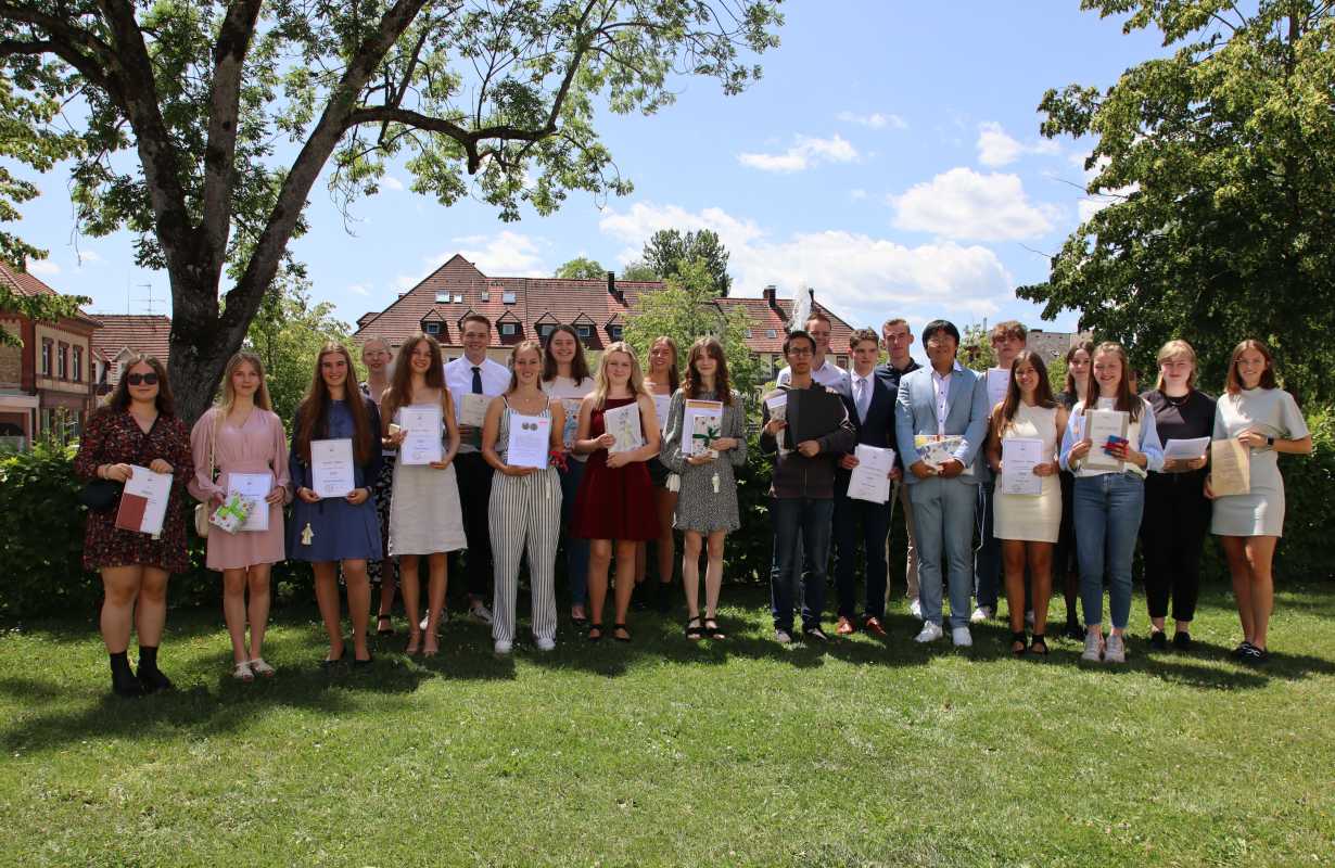 Am allgemeinbildenden Zinzendorfgymnasium ging der Scheffelpreis (Deutsch) an Alissa Hergenröder, der Englisch-Preis an Amelie Gaus, der Preis für Gemeinschaftskunde an Mia Jenter. Die Deutsche Mathematiker-Gesellschaft verlieh gleich zwei Preise, sie gingen an Jiayi Tong und Yangjun Wang. Letzterer bekam auch den Ferry-Porsche-Preis für besondere Leistungen in Mathe und Physik. Den Preis der Deutschen Physikalischen Gesellschaft bekam Jiayi Tong. Daniel Kasfeld wurde im Fach Biologie ausgezeichnet, Hannah Jauch in Chemie. Den Otto-Dix-Preis bekam Luisa Greiner, Elisabeth Saurer den Fachschaftspreis Bildende Kunst. Den Wettsteinpreis für Musik teilten sich Hannah Jauch und David Schnee, der Fachschaftspreis Musik ging an Emese Basco, Natalie Niethammer, Elisabeth Saurer und Jiayi Tong. Für besondere Leistungen in Sport wurde Anna-Maria Britsch mit der Alfred-Maul-Gedächtnismedaille ausgezeichnet, David Schnee bekam den Preis des Elternbeirats. Daniel Kasfeld, Alissa Hergenröder, Hannah Jauch, Mia Jenter und Sarah Schmidt bekamen ein e-fellows-Stipendium.