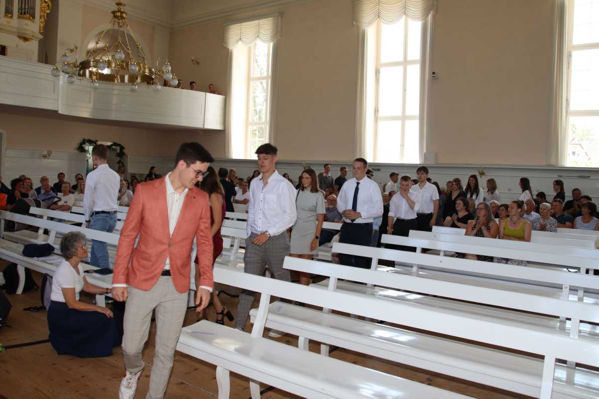 Die Erleichterung war ihnen anzusehen: Die diesjährigen Abiturientinnen und Abiturienten der allgemeinbildenden und beruflichen Zinzendorfgymnasien hatten nicht gerade einfache Prüfungen hinter sich und ließen sich glücklich auf den Bänken des Kirchensaals nieder, um gemeinsam mit ihren Lehrerinnen und Lehrern, dem Internats-Team, ihren Mitschüler*innen und natürlich ihren Eltern und Angehörigen in einem Gottesdienst die bestandene Hochschulreife zu feiern.