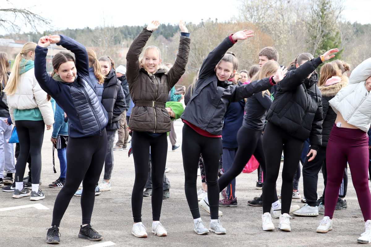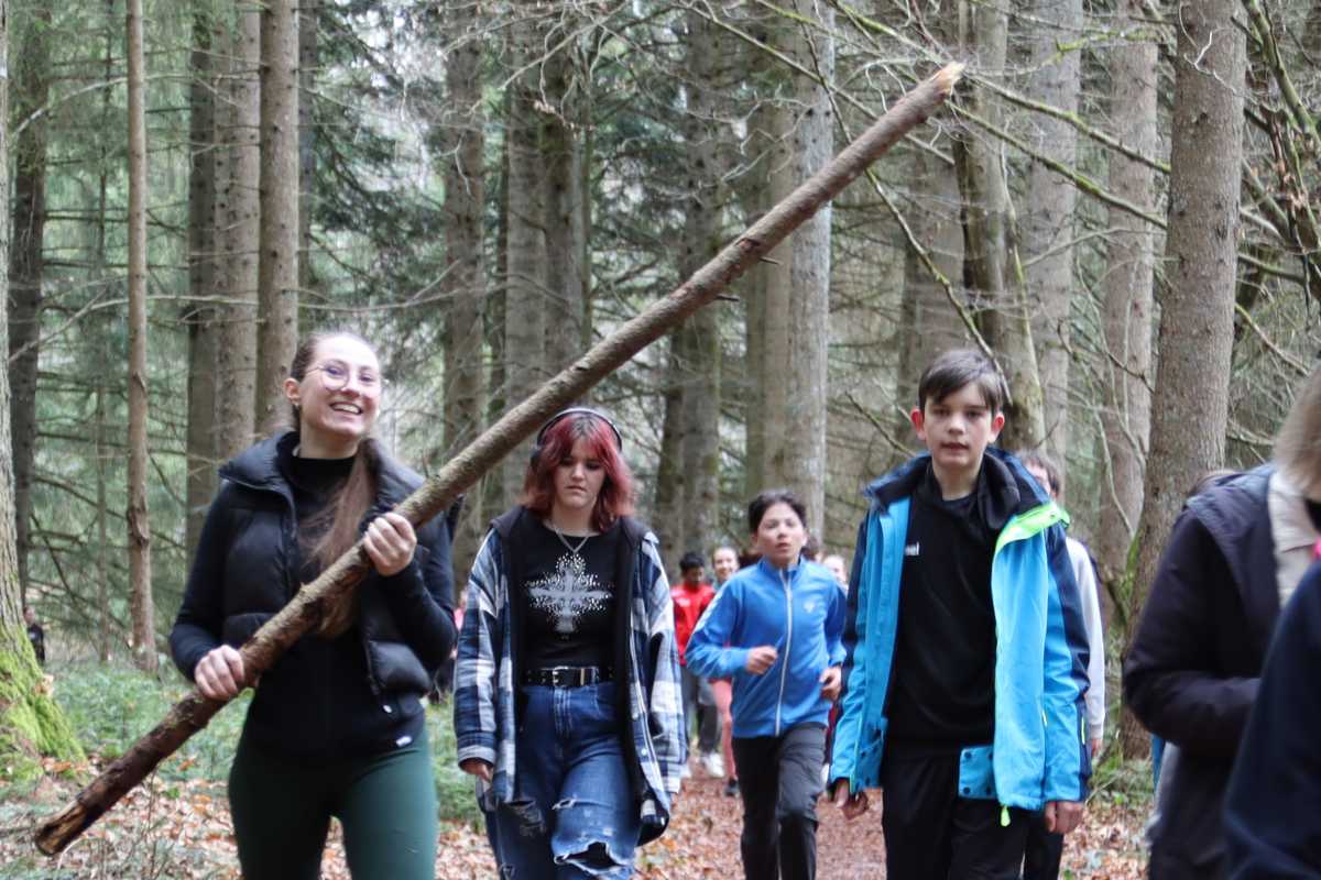 Viele waren noch fit genug für Späße auf der Strecke, so hatten einige Schülerinnen einen langen Ast dabei, mit dem sie ihre Mitlaufenden gelegentlich zu einer Limbo-Einlage herausforderten. Andere konnten es nicht lassen und nahmen jedes Mal, wenn sie eine Kamera erblickten, ihre Mitschüler auf den Arm.