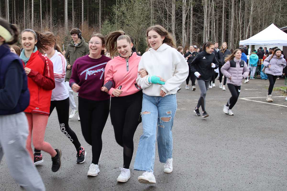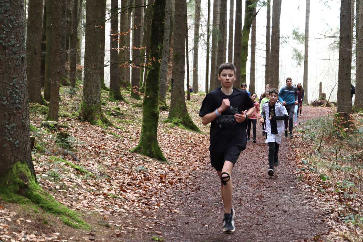 Jeder Schritt ist Geld: Schüler*innen laufen Runde um Runde für den guten Zweck durch den Wald