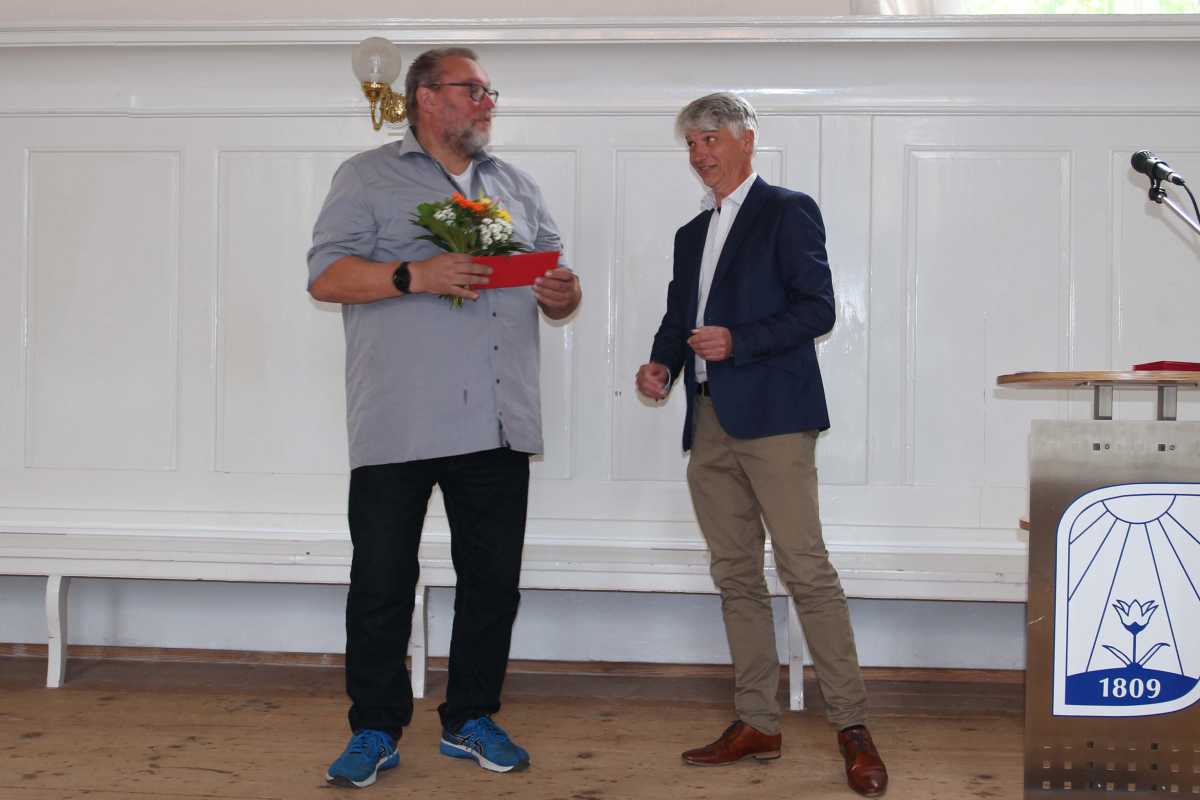 Daher könne sich das Zinzendorfschulwerk ebenfalls geehrt fühlen – „geehrt, „dass Sie in unseren Reihen sind: Mitarbeiterinnen und Mitarbeiter, die lange Zeiträume mitgestalten, die Schule prägen, die bleiben. Die Schule kann sich freuen, Menschen zu haben, die jahraus jahrein treu ihre Arbeit tun.“