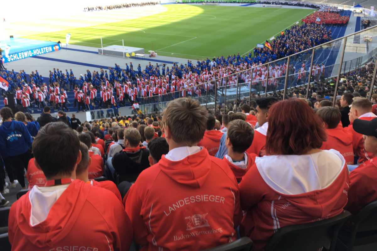 Am Tag vor den Wettbewerben drehten sie zum 50. Jubiläum von "Jugend trainiert für Olympia und Paralympics" gemeinsam mit 472 Schulmannschaften aus dem ganzen Bundesgebiet eine Stadionrunde im Berliner Olympiastadion. Dabei wurden die insgesamt 4670 Teilnehmer mit großem Beifall von tausenden Berliner und Brandenburger Schülern und Zuschauern empfangen. „Der Einzug ins Stadion, die Ehrenrunde auf der blauen Bahn, das war auf jeden Fall schon mal olympiareif", sagte Bundespräsident Frank-Walter Steinmeier in seiner Begrüßungsansprache.
