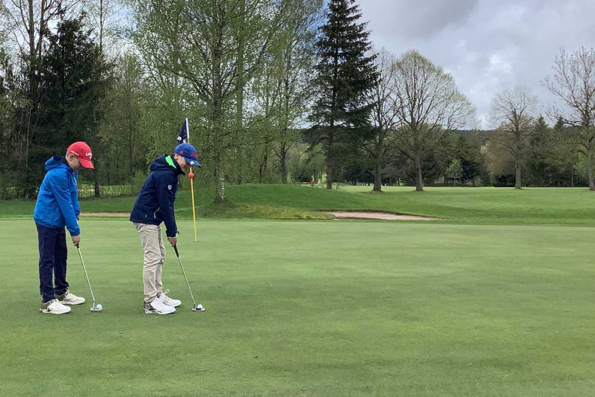Während die aktiven Golfer der Zinzendorfschulen – während ihres Spiels bestens mit Essen und Getränken versorgt vom AES-Kurs der Klasse 9R – um Punkte kämpften, können derzeit die Schülerinnen und Schüler aller fünften Klassen bei der Huki-Golfschule in den Sport auf dem grünen Rasen hineinschnuppern. Wer Spaß daran hat, kann das Spiel in der Golf-AG ab Donnerstag, den 25. Mai ausprobieren.