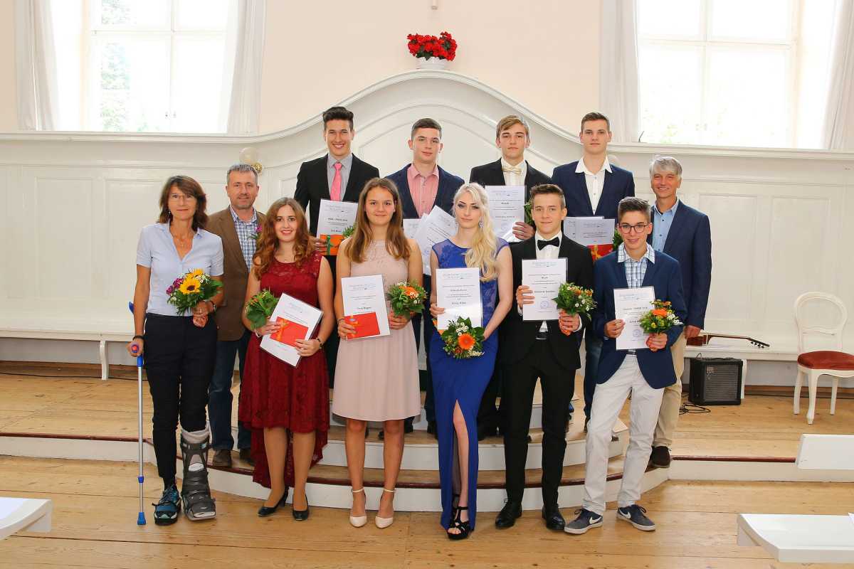In der Feierstunde, die von Lehrern und Schülern musikalisch begleitet wurde, wurde noch eine Instrumentalversion von „Time to say goodbye“ gespielt, bevor mehrere Absolventen für ihre besonderen Leistungen ausgezeichnet wurden: Aus der 10w schaffte Felix Kammerer die beste Jahresleistung und wurde zudem mit dem Technik-Preis der EGT und dem MNT-Preis der Firma Frei Lacke ausgezeichnet. Der Sozialpreis des Vereins der Freunde und Förderer der Zinzendorfschulen ging an Amunet Hagras.