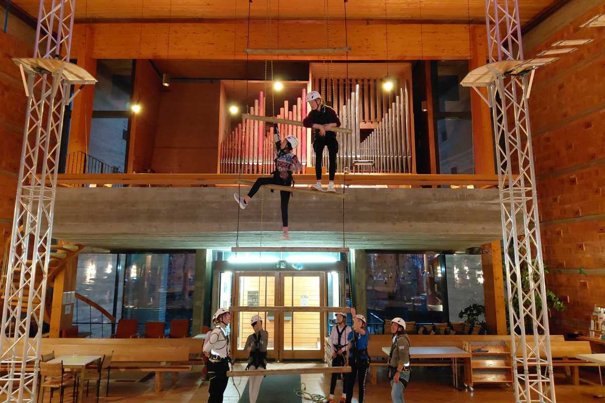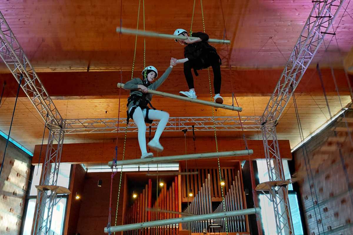 Zwischen Kirchenbänken und Kletterseilen konnten die Schülerinnen und Schüler ihre Fähigkeiten erproben, neue Routen ausprobieren und die besondere Atmosphäre dieses einzigartigen Ortes erleben. Der Ausflug bot nicht nur sportliche Herausforderungen, sondern auch eindrucksvolle Perspektiven – im wahrsten Sinne des Wortes.
