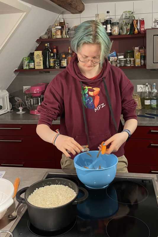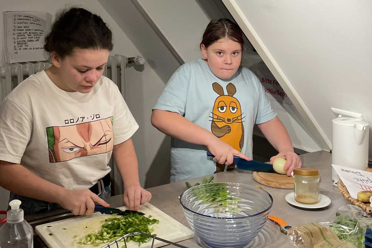 Im Freundeskreis zu kochen und dann gemeinsam zu essen macht besonders Spaß. Einmal in der Woche trifft sich die Koch-AG des Internats und schnippelt und brutzelt, rührt und köchelt in der Küche. Besonders tricky ist dabei das Zwiebelschneiden, da bleibt kein Auge trocken. Aber wenn alle um den Tisch sitzen und es sich schmecken lassen, dann wissen sie: Die Mühe hat sich gelohnt.