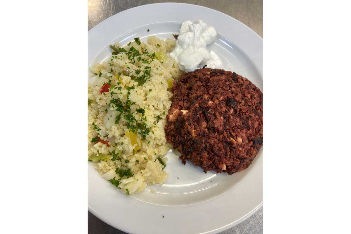 In Groß- und Lehrküche wurde fleißig geschnippelt und gebraten, gerührt und gekocht – wie immer ist es vor allem eine Frage der Planung, damit Hauptgerichte und Beilagen möglichst zeitgleich servierbereit sind. Es gab Fish n`Chips mit Kräuterdip, Rote-Beete-Feta-Bratlinge, Rote-Beete-Rohkost, Brokkoli-Rind-Frikadellen, Pastinaken-Karotten-Kartoffelbrei, Couscous-Gemüse und zum Nachtisch Apfel-Tiramisu.