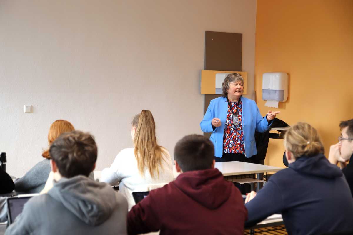 Gut vorbereitet hatten sich die Schülerinnen und Schüler der Klasse SWG1 der Zinzendorfschulen auf den Besuch der Landtagsabgeordneten Martina Braun (Grüne). Im Fach Global Studies hatten sie mit ihrem Lehrer Philipp Hudek einen langen Fragenkatalog vorbereitet, in dem es um Persönliches, Innen-, Klima-, Verkehrs- und Außenpolitik ging. So wollten sie wissen, wie ein typischer Arbeitstag aussieht, wie sie vom Gendern hält, was sie persönlich zum Umweltschutz beiträgt, welchen Einfluss Proteste und Demonstrationen wirklich auf die Politik haben und ob die Unterstützung für die Ukraine gut sei.