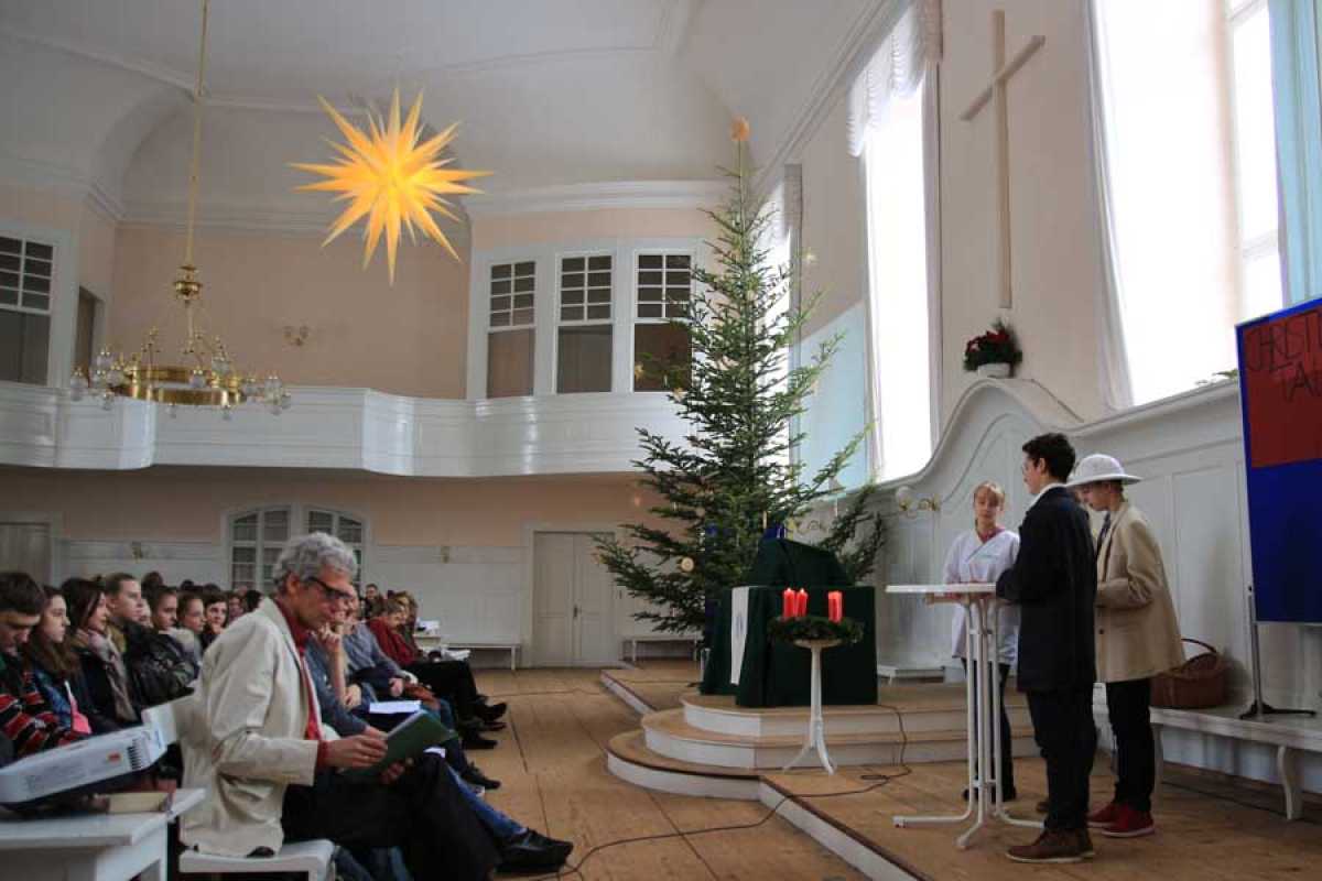 Schüler sammeln für Unicef, Frauenarbeit in Tansania und ProKidsMit drei feierlichen Gottesdiensten haben die Zinzendorfschulen am Winteranfang ihre Schüler in die Weihnachtsferien verabschiedet. Bei den Jüngsten stand das Thema Licht im Mittelpunkt. „Zu Weihnachten wird es hell“, so der Schulpfarrer Br. Fischer, „deshalb ist Licht zu Weihnachten ein wichtiges Thema.“