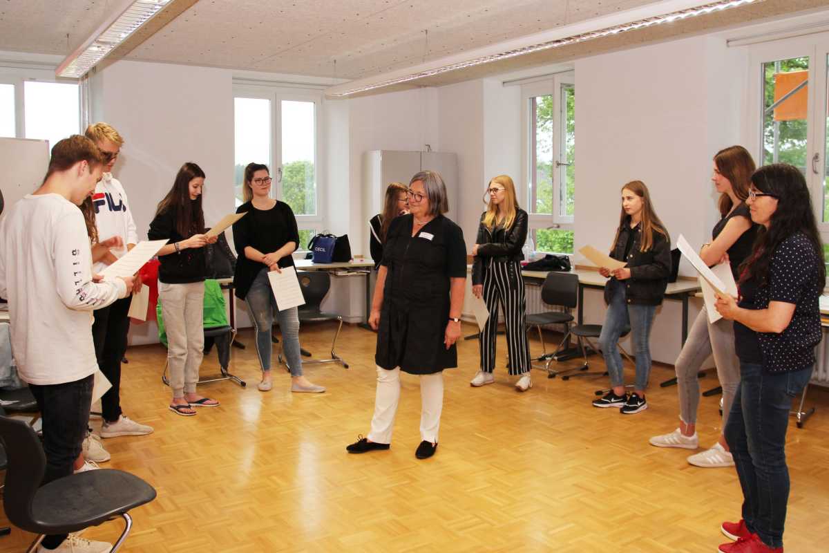 Beate Weiß vom Netzwerk praktische Rhetorik des Regierungspräsidiums Freiburg und ihre Kollegin Claudia Rösch waren nach Königsfeld gekommen, um die Jugendlichen zu trainieren. „Es geht darum, die Persönlichkeiten zu schulen und den Schülern dabei zu helfen, ihre Meinung zu vertreten“, erklärte die Musiklehrerin aus Tuttlingen, die nicht nur Mitbegründerin des Netzwerkes ist, sondern am Rottweiler Seminar auch Lehrer in der Redekunst schult.