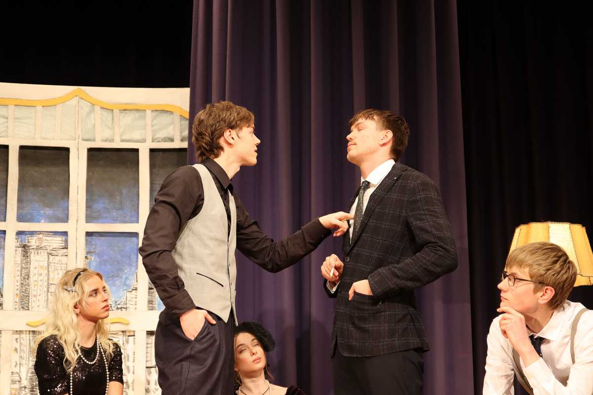 Das Ensemble hat sich dem Stoff kreativ gewidmet, so wurde beispielsweise aus Mrs. Crosby kurzerhand ein Mr. Crosby, der den leicht tatterigen, väterlichen Millionär überzeugend verkörpert. Der leicht neben der Spur stehende Butler Pollock (Paul Schott) belässt es trotzdem bei der Anrede „Madame“.