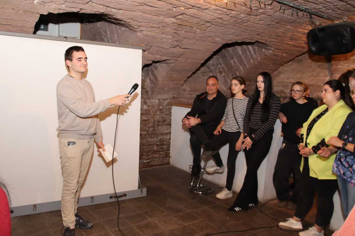 Am vergangenen Freitag blieben die Türen der Zinzendorfschulen noch lange nach Schulende offen. Der Grund hierfür war der „Nachtcafé"-Abend – ein gemeinsames Projekt der Kunstprofil-Klassen 11a, c und 10b und der Deutschklassen 11a und 11c zur literarischen Epoche des Expressionismus. Mithilfe der leitenden Lehrkräfte Sr. Saurer, Sr. Kyburz und Sr. Bühler gestalteten die Schülerinnen und Schüler im Kellergewölbe des Hauses Spangenberg einen expressionistischen Abend.