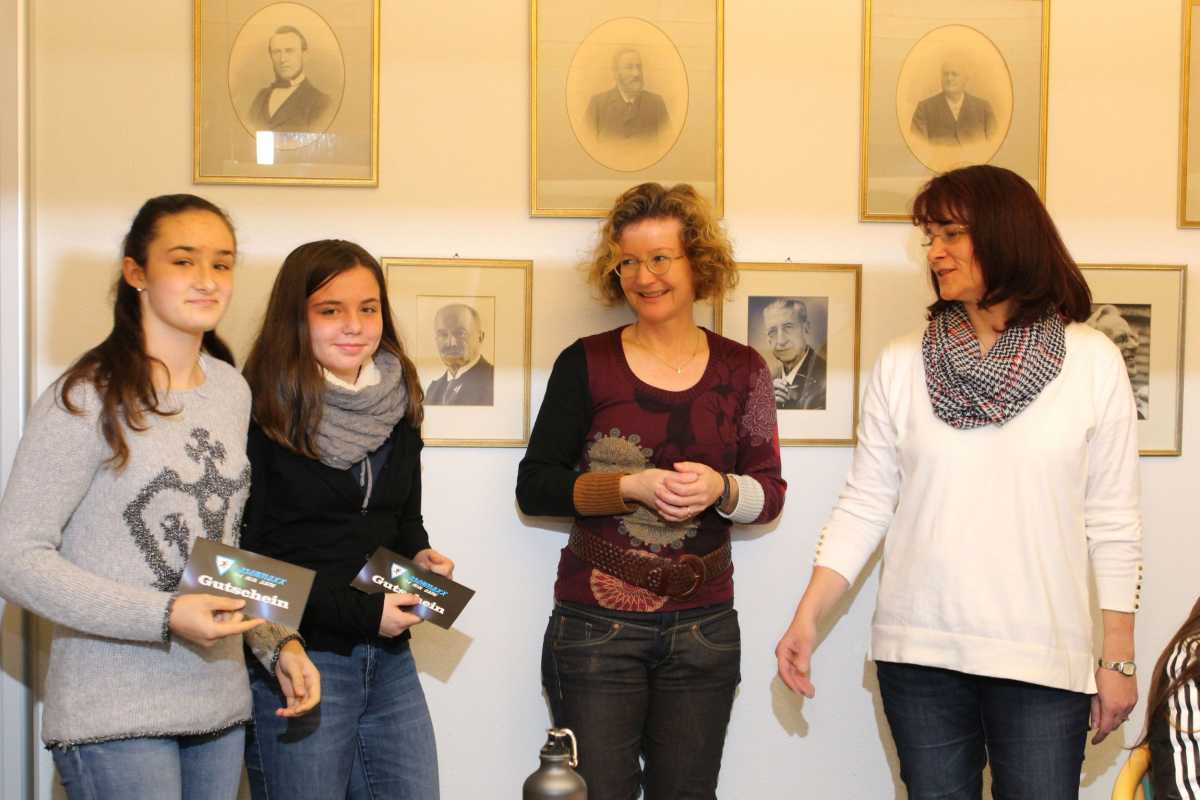 Schulleiterin Dr. Beate Biederbeck und die Messe-Organisatorin Katja Schmidt gratulierten den Preisträgern. Zur Übergabe der Gewinne waren auch Luisa Maier von der Firma Kaufland und Charlotte Baumert von der evangelischen Altenhilfe extra noch einmal nach Königsfeld gekommen.