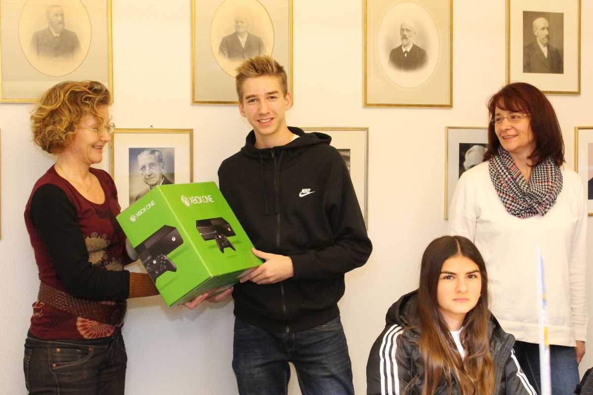 Auf unserer Berufsfindungsmesse JOBwärts! gab es in diesem Jahr eine Tombola mit tollen Preisen. Die Gewinner wurden ausgelost und konnten jetzt ihre Preise in Empfang nehmen: Laurin Ohnmacht freute sich über einen Profi-Grill, Jakob Fiehn über eine X-Box und Monika Hoffmann über einen Thomsen-Kopfhörer. Diese ersten Preise wurden vom Kaufland Bad Dürrheim gespendet.