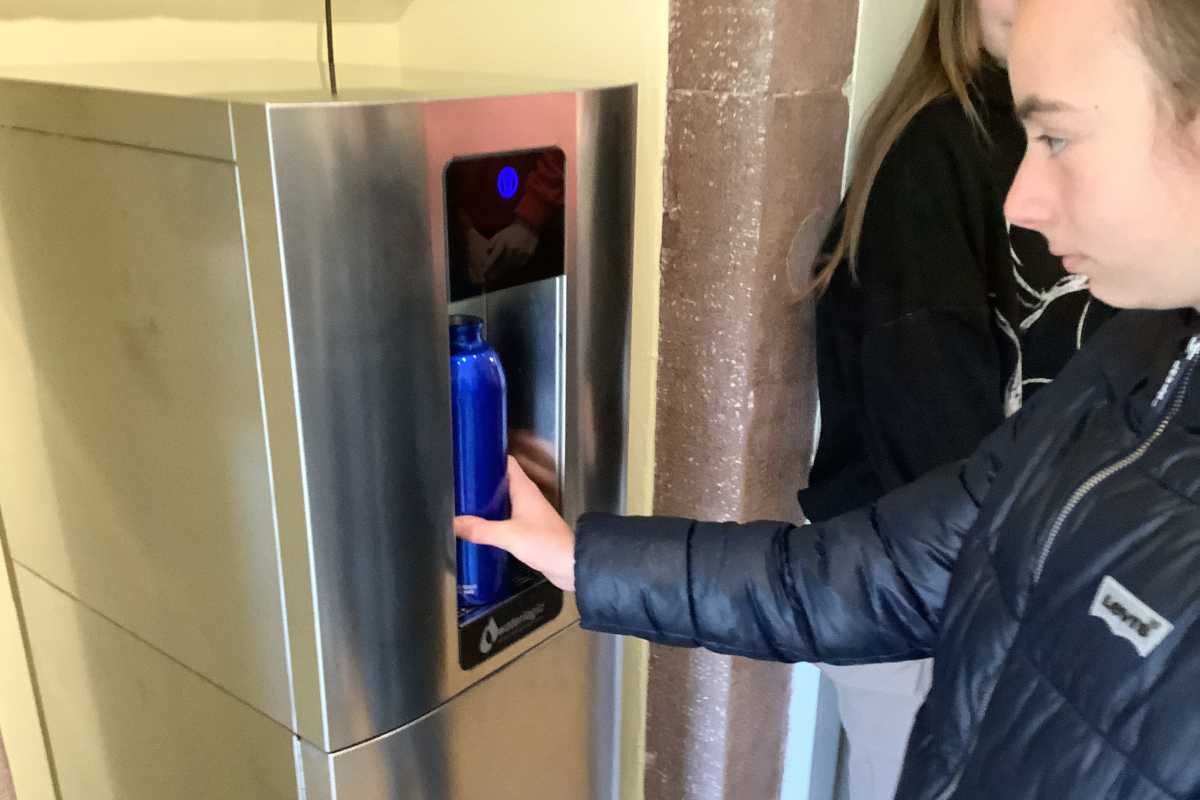 Unter den ersten Nutzern war die AES-Gruppe von Sr. Helms aus der 7Rb. Die Schüler*innen freuen sich, dass sie keine Kunststoffflaschen mehr zu kaufen brauchen und damit einen wertvollen Beitrag für ihren täglichen Flüssigkeitsbedarf und die Umwelt leisten.