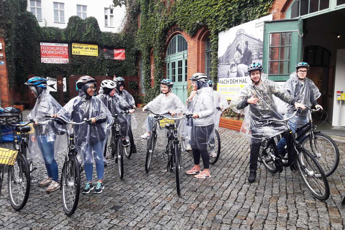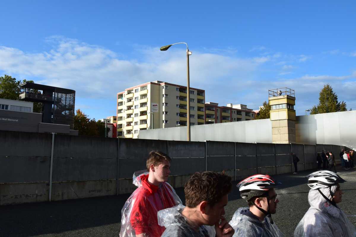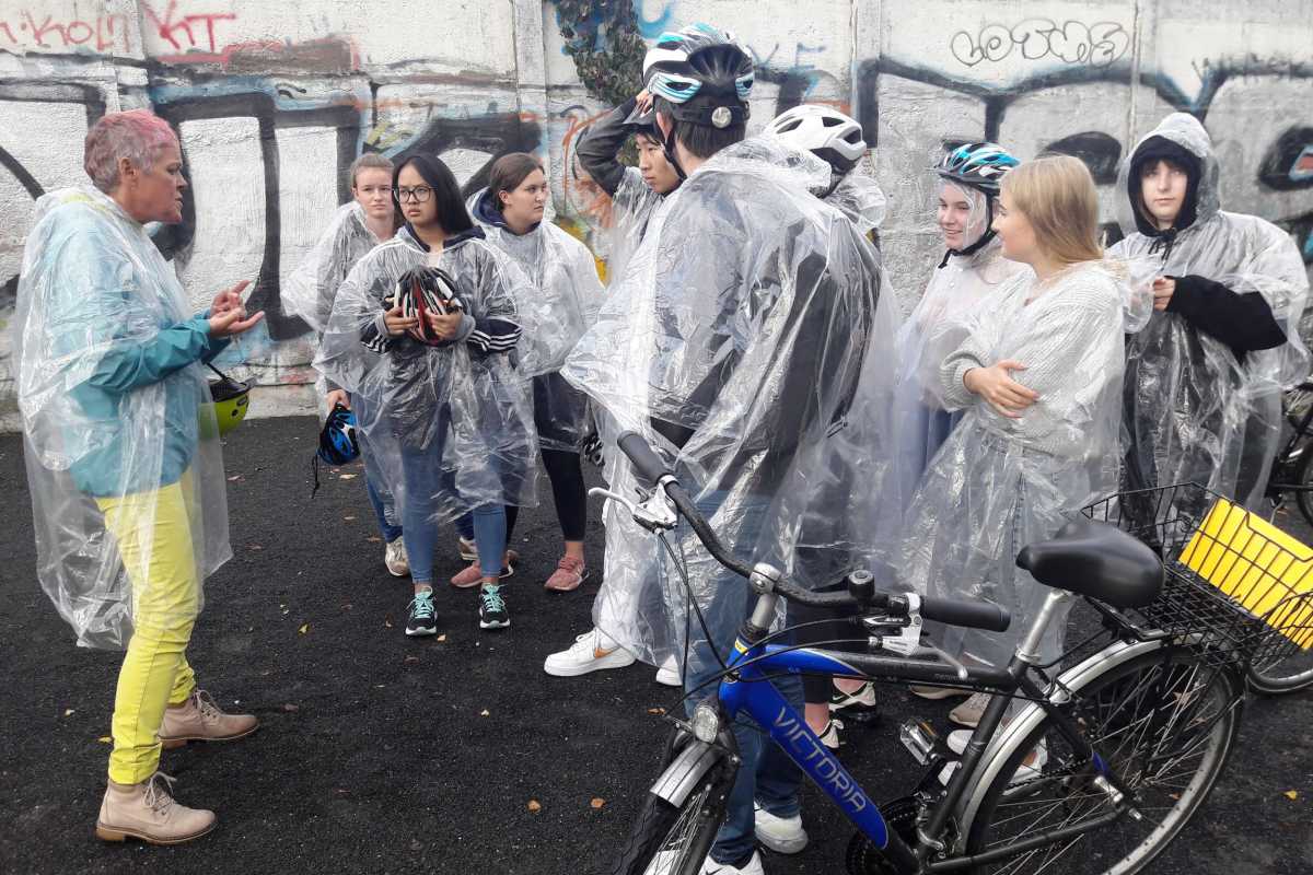 Um nicht alles zu Fuß zu besichtigen, liehen sie sich Fahrräder, mit denen sie den Mauerradweg entlangfuhren. Sie besichtigten dabei unter anderem die Gedenkstätte Berliner Mauer und erhielten von den Guides viele interessante Hintergrundinformationen hinsichtlich der Mauer.