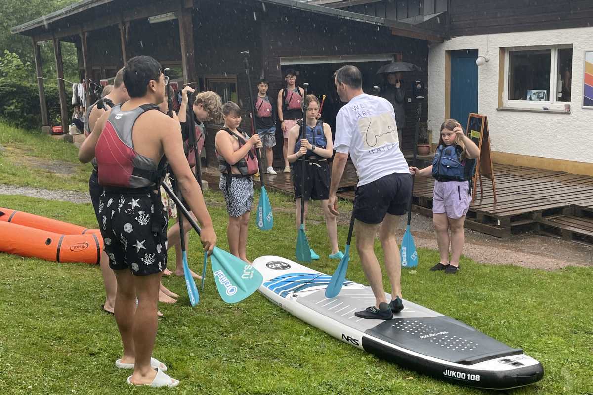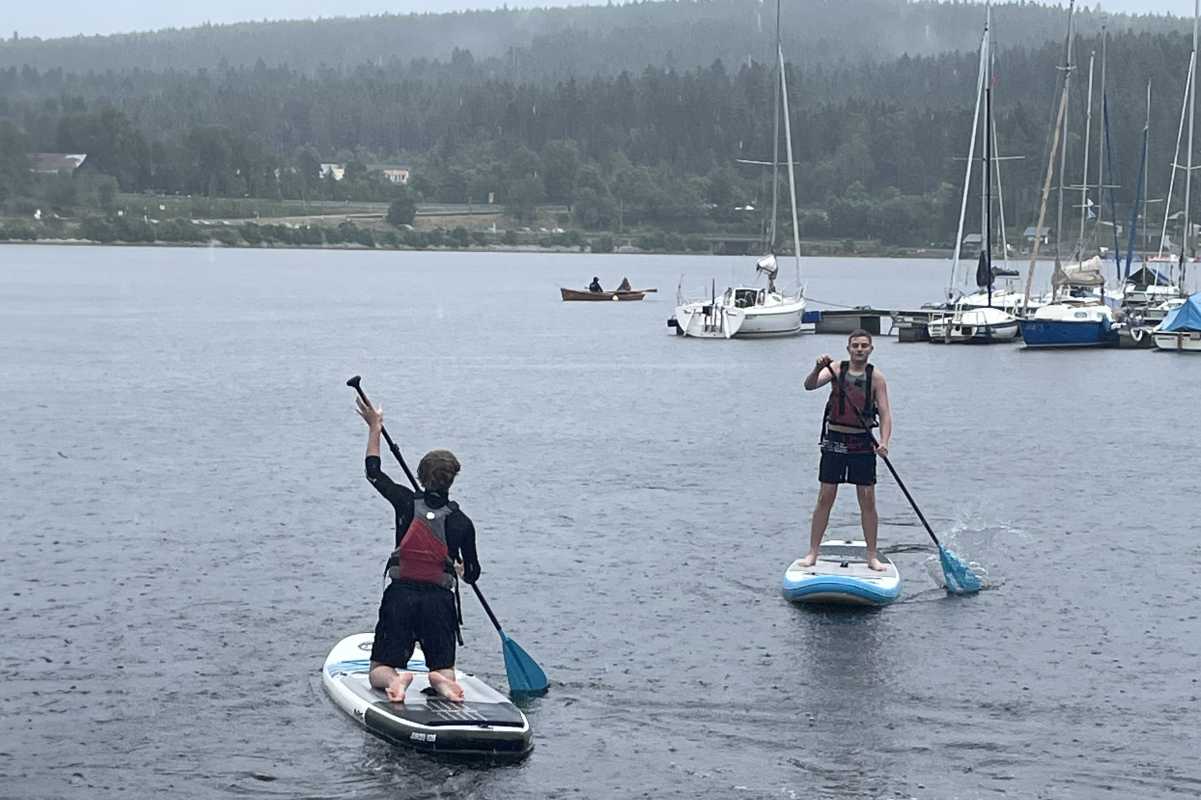 Nass wird man beim Baden ja sowieso, da kommt es auf den Regen auch nicht mehr an. Auch wenn es ein bisschen Überwindung kostete, ließen sich unsere Internatsschüler*innen bei ihrem Ausflug an den Schluchsee nicht davon abbringen, mit den SUPs, Kajaks oder Kanadiern aufs Wasser zu gehen.
