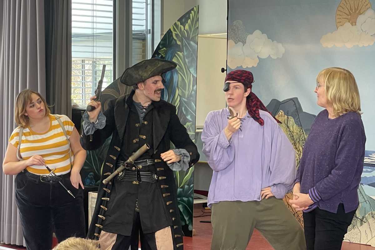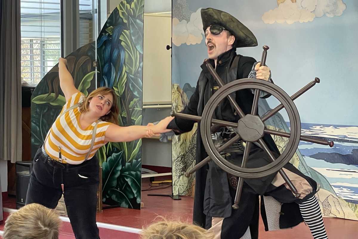 Pünktlich zum kalendarischen Beginn der Fastnacht waren am Dienstag Piraten zu Besuch an den Zinzendorfschulen. Die englischsprachige Theatergruppe "White Horse Theater" begeisterte die Schüler und Schülerinnen der 6. und 7. Klassen aus Realschule und Gymnasium im HKG Saal mit dem Stück "The Tigers of the Sea". Fast 150 Schüler*innen wurden Zeugen der Abenteuer von Black Nick Sharkmuck, Hardboiled Harry und Cutthroat Keith; einer verrückten Piratencrew, die ein neues Mitglied kapert und zum Piraten ausbilden möchte. Die Schauspieler*innen animierten die großen und kleinen Zuschauer zum Mitmachen und machten damit das Theaterstück zu einem echten Erlebnis.