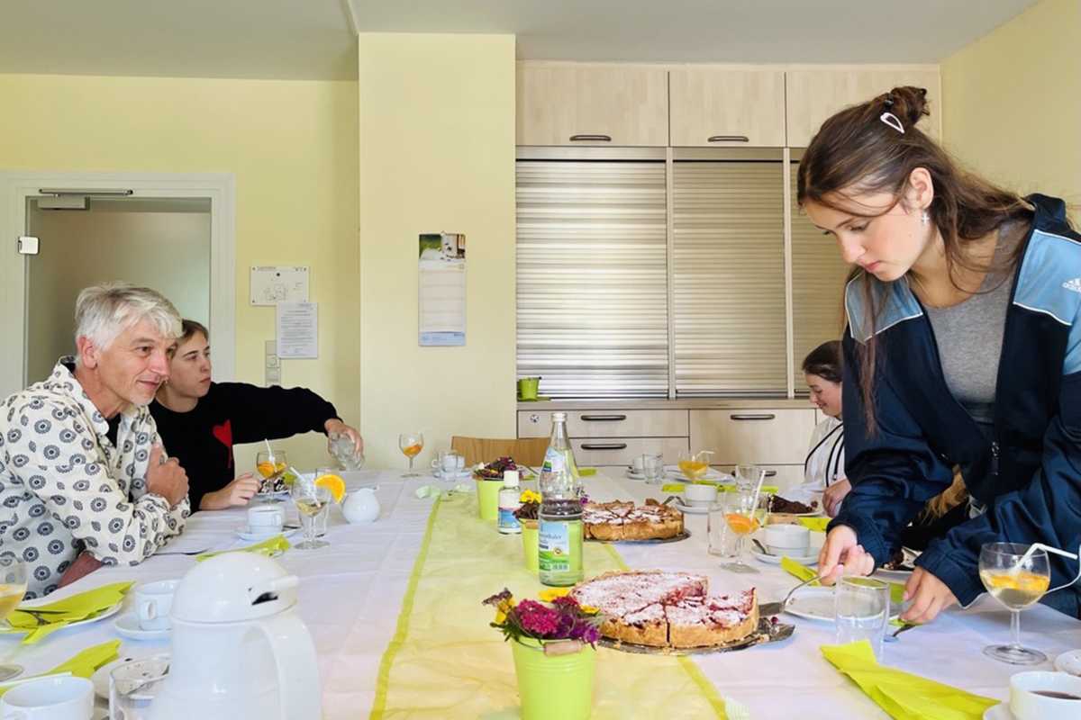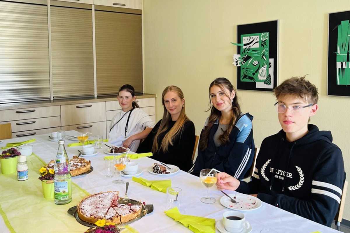 Mit viel Engagement organisierten die Jugendlichen ein liebevoll gestaltetes Kaffeekränzchen. Sie servierten selbstgemachte Schwarzwälder Kirschtorte und Johannisbeerkuchen – letzteren mit frischen Beeren aus dem eigenen Schulgarten – sowie pikantes Gebäck und alkoholfreie Cocktails.