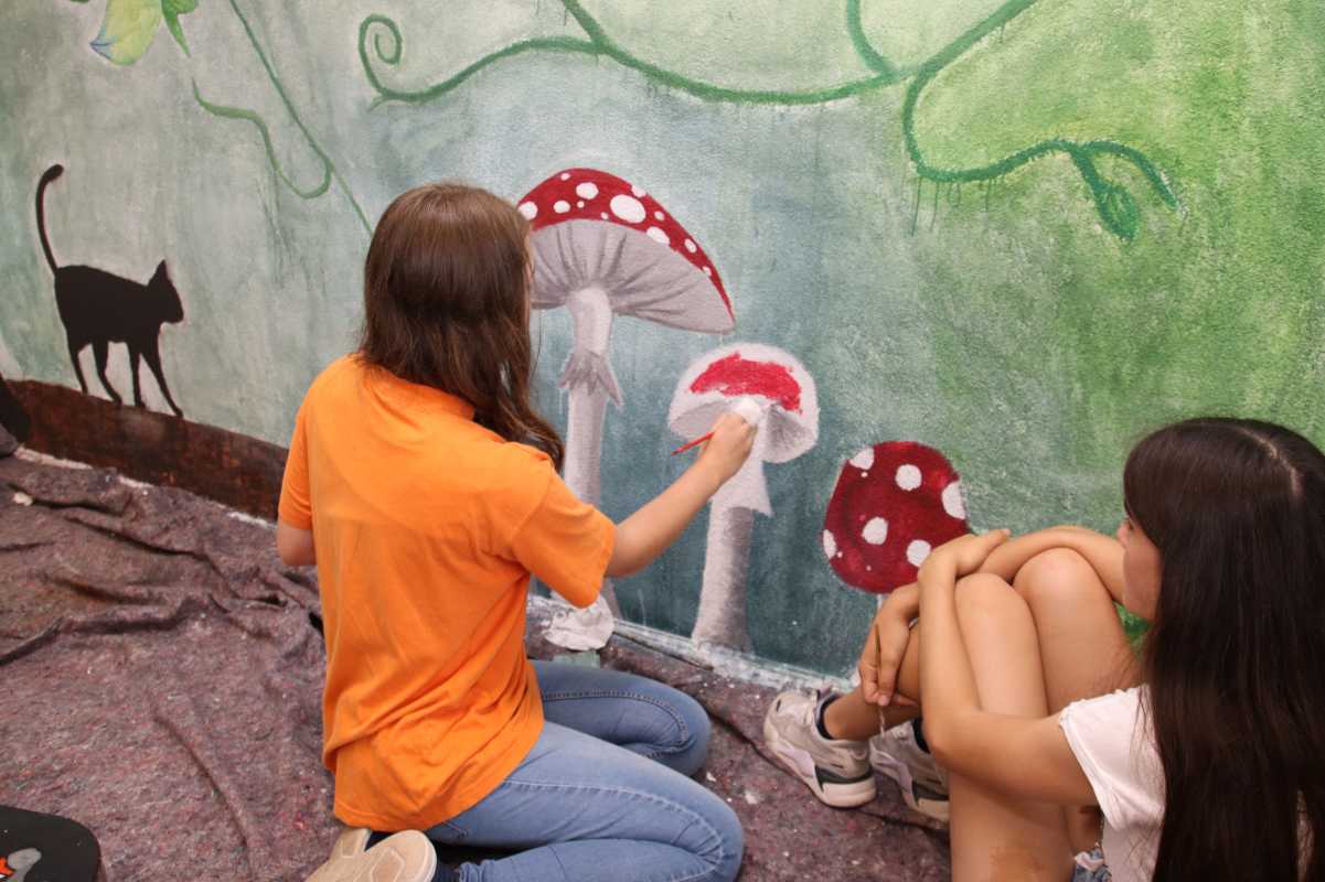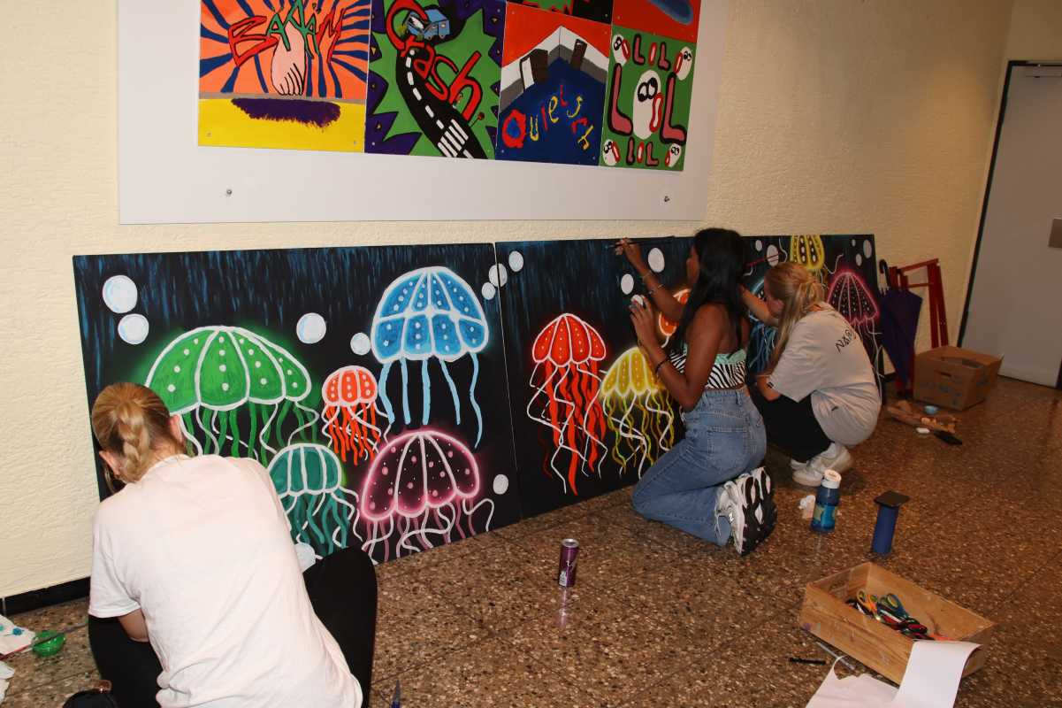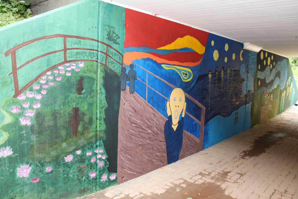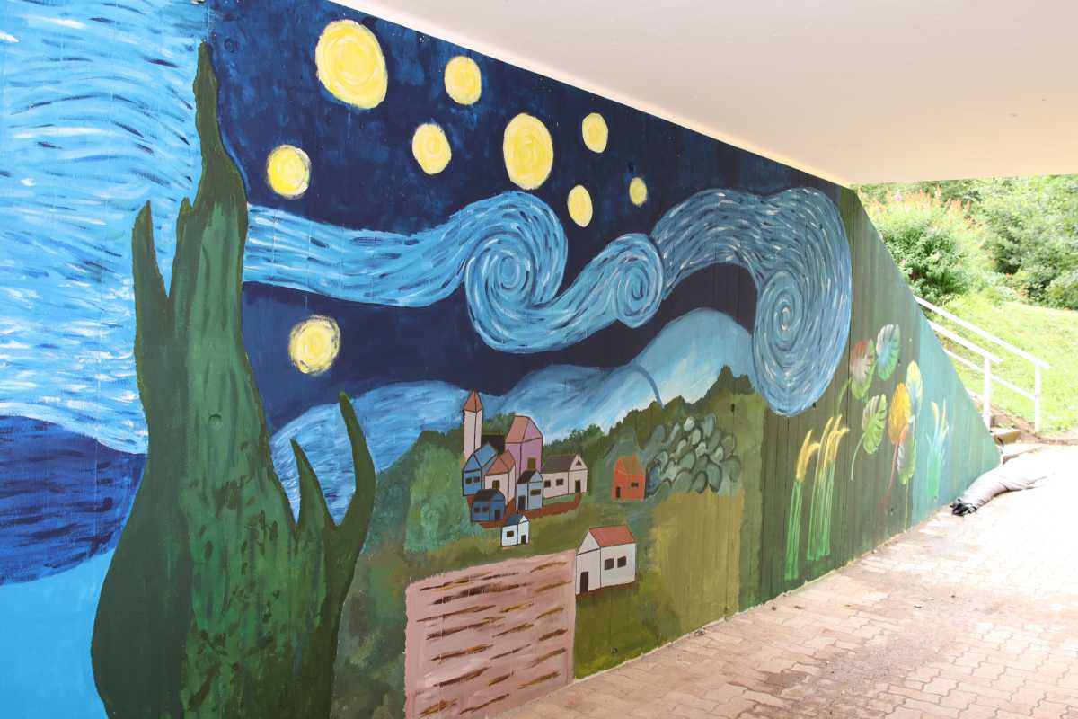 Einige sind nur nur an dem Tag zu sehen, andere werden mehrere Jahre Bestand haben, wie zum Beispiel die Paradiesvögel, die den Schulgarten zieren werden sowie Wandmalereien an der Schule, wo das Kunstatelier ein tolles neues Outfit bekommt oder an der Unterführung zum Solara. Passend zum Unterricht bekommen auch einige Fachräume im Amos-Comenius-Haus neue Wandbemalungen, wie zum Beispiel im Erdkunderaum oder im Flur vor dem Chemiesaal.