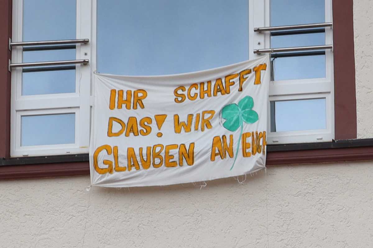 Wie in jedem Jahr drücken Mitschüler*innen und Mitarbeitende nicht nur die Daumen, sondern unterstützen die Prüflinge auch mit aufmunternden Bannern und Transparenten.