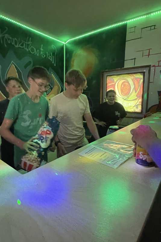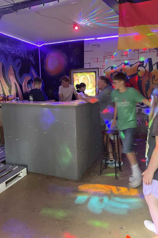 In vielen Stunden Eigenarbeit und mit zahlreichen kreativen Ideen haben die Bewohner*innen des Internats ihren Jugendclub aufgepeppt. Mit großem Einsatz und Engagement wurde der Raum verschönert, wobei besonders die neuen Graffiti an den Wänden ins Auge fallen. Diese wurden rechtzeitig zum Beginn der Fußball-Europameisterschaft fertiggestellt und sorgen nun nicht nur an den Club-Abenden für eine einzigartige Atmosphäre.