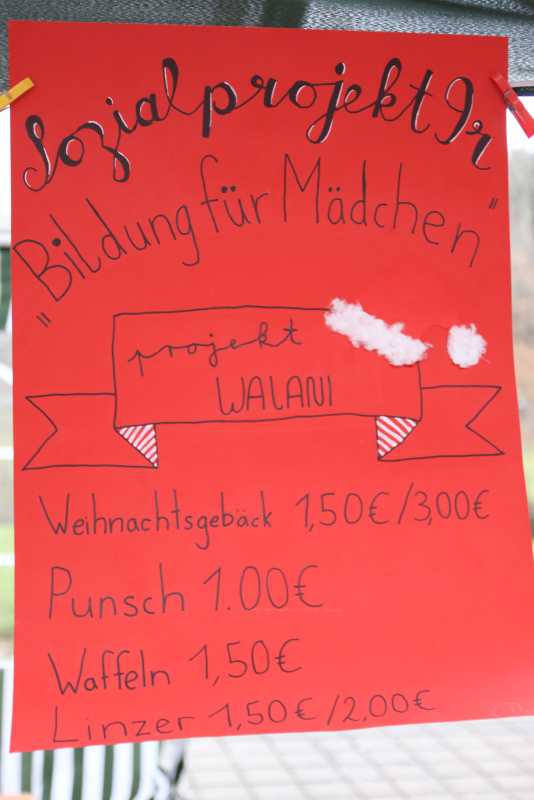 Verpackung der Ware, Dekoration und Preisgestaltung gehörten ebenso zu den Aufgaben wie die Beschäftigung mit einem sozialen Projekt, welches die Schüler*innen mit ihrem Engagement unterstützen können. Hier fiel die Wahl auf ein Projekt der Herrnhuter Mission, welche die Bildung von Mädchen und Frauen unterstützt. Die Kollekten für den Weihnachtsgottesdienst, die Sammlung bei der Mitarbeiterweihnachstsfeier und der Erlös vom Stand der Zinzendorfschulen auf dem Königsfelder Weihnachtsmarkt gehen ebenfalls an das WALANI-Projekt.