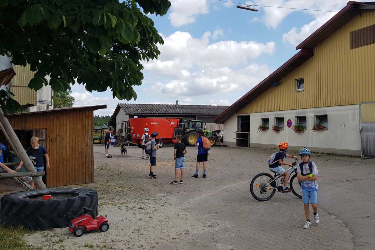 Zum Abschluss ging es bei den Tannenhöfen zum letzten Stopp: Nach Kuhbesuch im Stall und Fußballspielen mit dem Hofhund schlängelte sich die Gruppe schließlich wohlbehalten zurück zur Schule. Definitiv ein erlebnisreicher erster Tag!