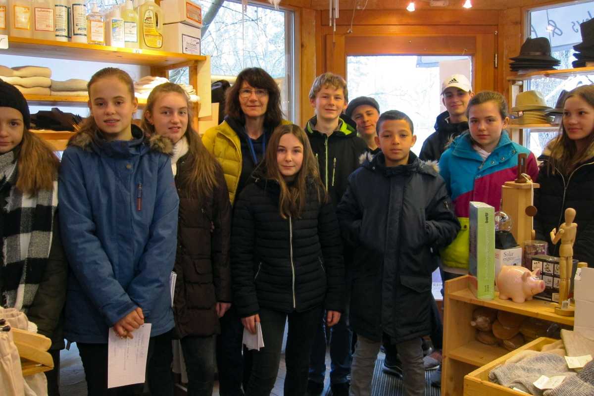 Im Rahmen des Wahlpflichtfachs AES (Alltagskultur – Ernährung – Soziales) informierten sich die Schülerinnen und Schüler der siebenten Klasse der Zinzendorf-Realschule mit ihrer Lehrerin Sr. Helms direkt in Königsfeld über die Verarbeitung von textilen Rohstoffen. Sie erlebten bei Natur & Co wie Baumwolle, Wolle und Seide ohne den Einsatz von Pflanzenschutzmitteln oder Farbstoffen verarbeitet wird und lernten, dass es nicht nur Billig-Textilien mit fragwürdiger Herkunft gibt.