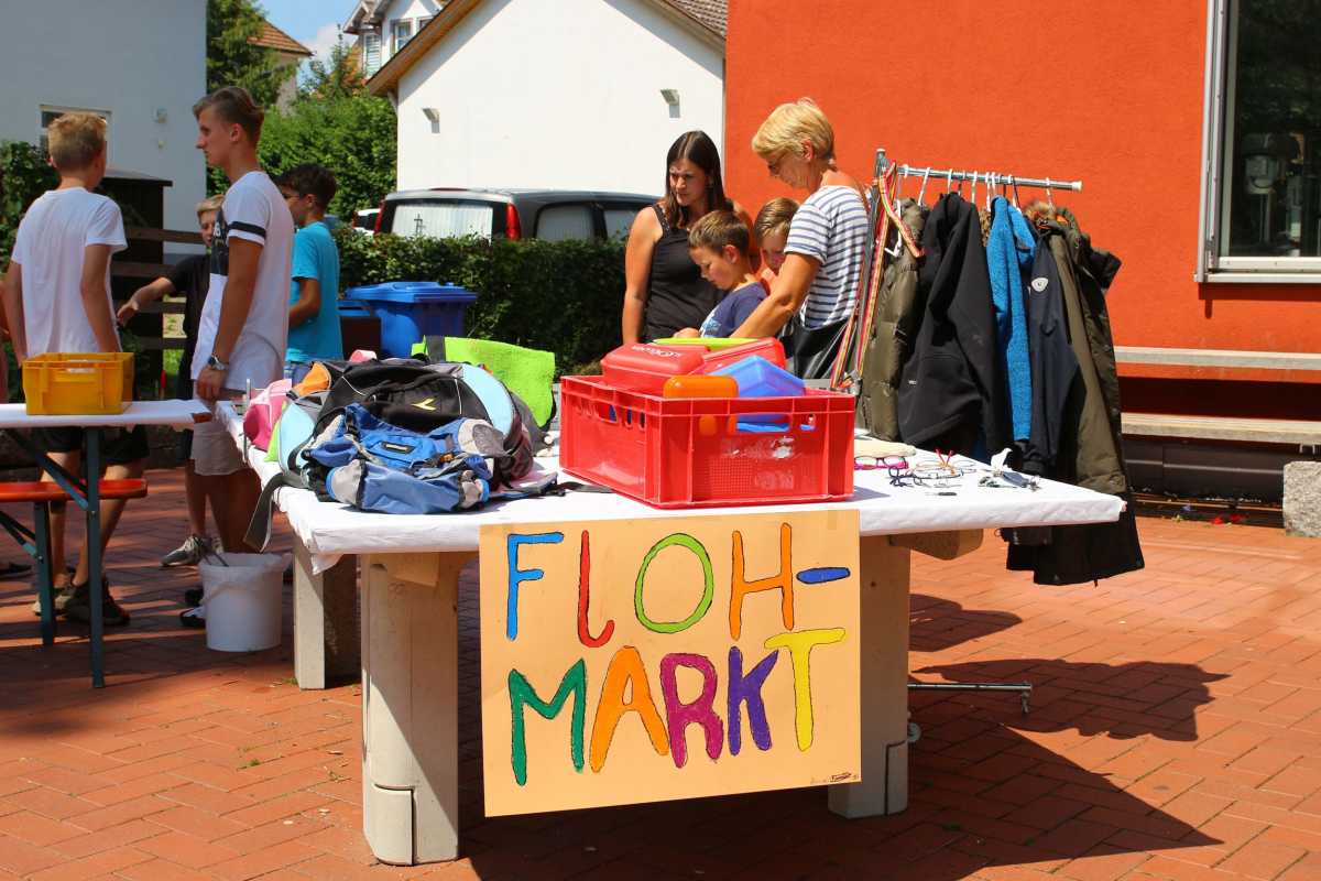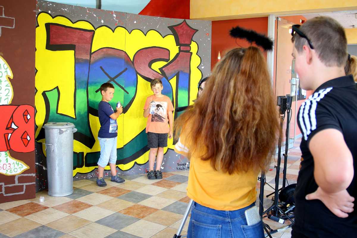 Mit zwei tollen Projekten konnte die letztjährige Klasse 8 der Realschule beim Schulfest 280,94 Euro einnehmen. Die Schülerinnen und Schüler hatten einen Flohmarkt organisiert und eine Fotoecke aufgebaut, bei der sich die Besucher gegen eine Spende als Rapper oder einfach so vor einer von mehreren im Kunstunterricht gestalteten Graffity-Wänden ablichten lassen konnten.
