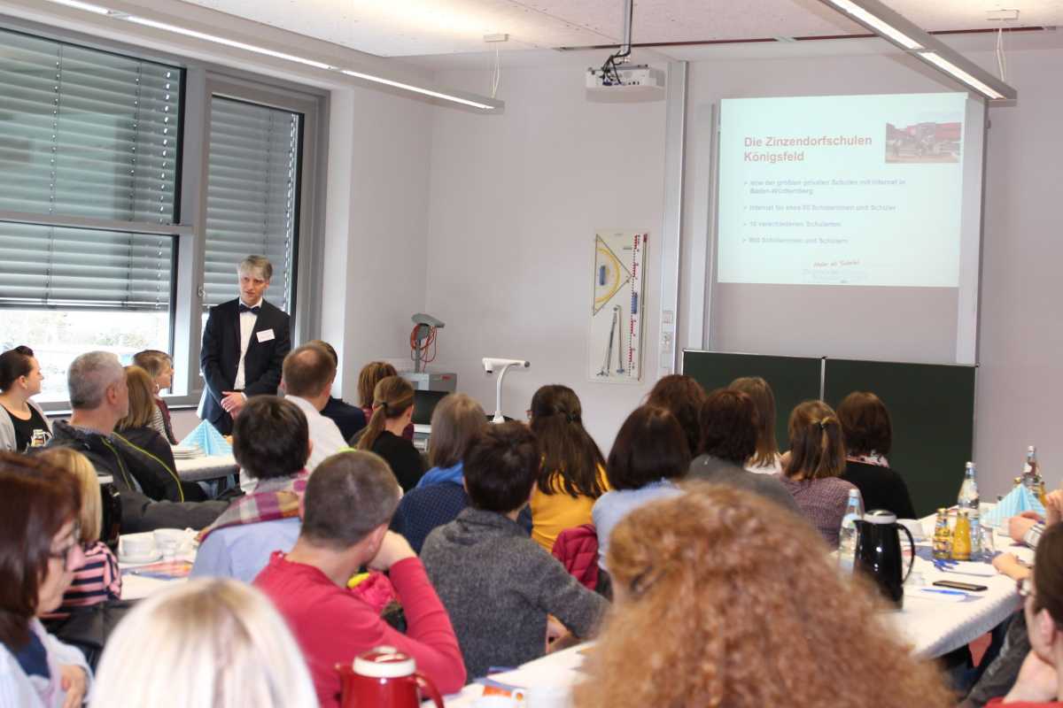 Wenn im Februar in Königsfeld die Parkplätze knapp werden, dann ist es wieder soweit: Grundschüler und ihre Eltern strömen an die Zinzendorfschulen, um sich bei der alljährlichen Viertklässlerparty über die allgemeinbildenden Schulen zu informieren. Sowohl der große Saal im Haus Katharina von Gersdorf, in dem sich die Eltern über G8 und G9 informierten, als auch der Saal im zweiten Stock, in dem die Realschule erklärt wurde, waren so voll, dass nicht einmal der obligatorische letzte Stuhl frei blieb. Rund 250 Mütter und Väter waren gekommen, dazu etwa 150 Viertklässler.