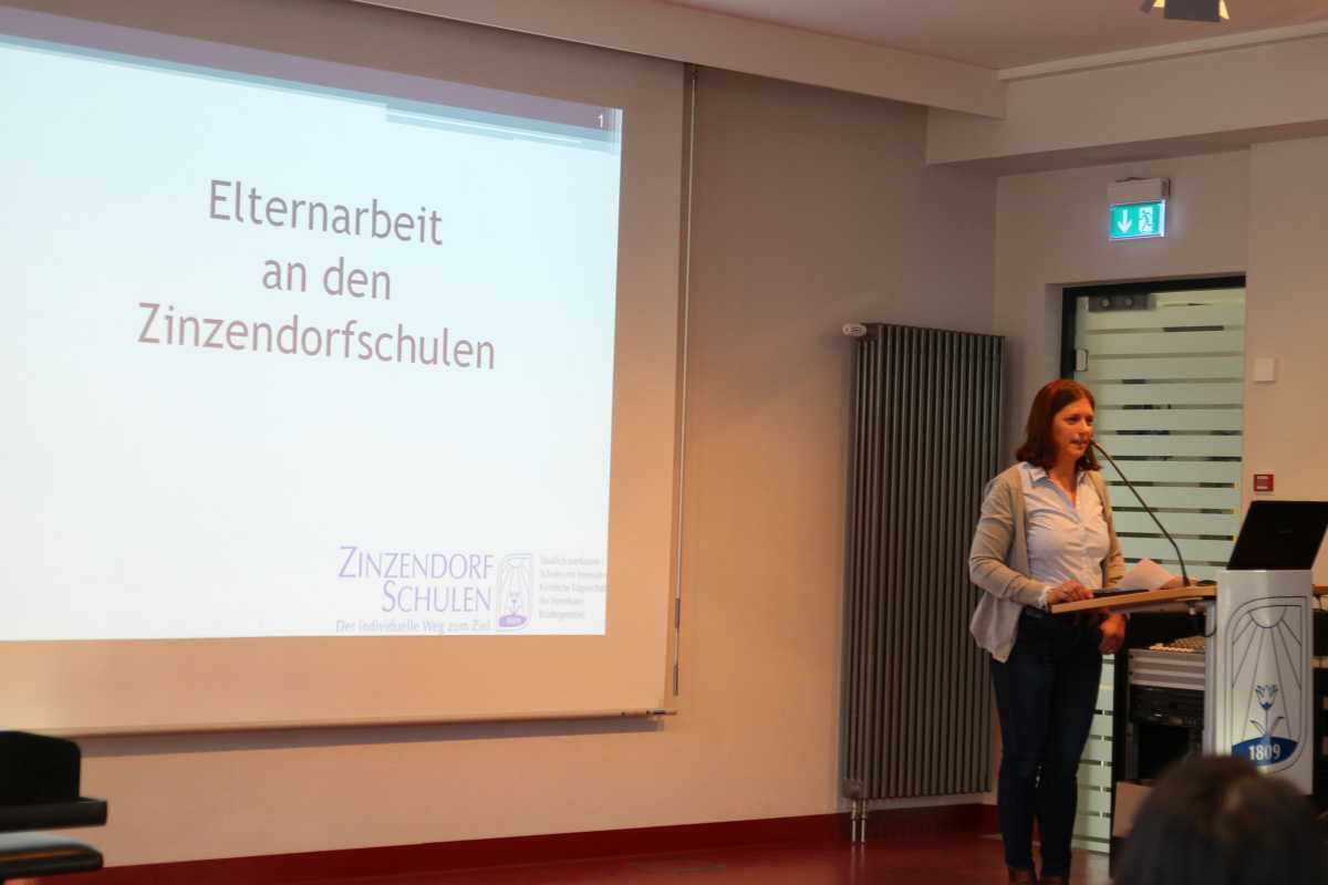 Die stellvertretende Elternbeiratsvorsitzende, Inke Eiser, stellte die Arbeit des Elternbeirats vor. „Eltern sind Partner der Schule“, hatte Br.Treude zuvor erklärt. „Wir erwarten von Ihnen Gelasssenheit, Vertrauen in unsere Arbeit und Kooperation.“