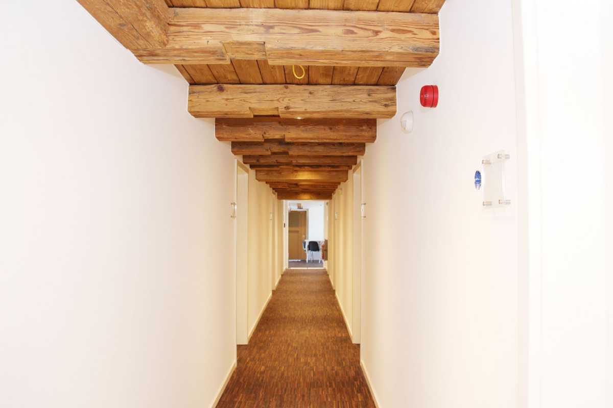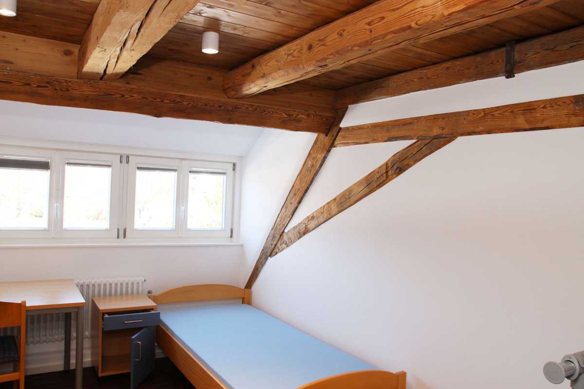 Die Räume unter dem Dach wurden komplett saniert. Alle Wände, Böden und Decken wurden entfernt, so dass nur noch das Fachwerk des historischen Gebäudes und die Außenmauern stehen blieben. Geänderte Brandschutzauflagen haben die Sanierung erforderlich gemacht. Bei der Gelegenheit wurden die Zimmer komplett neu und geräumiger gestaltet.