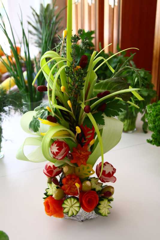 Es gab vorab eine Kürbissuppe, dann bunte Gemüsepfanne mit Rindfleisch und Reis, Alblinsen in Kräutersahnesauce mit Spätzle oder Fischburger mit Jogurt-Senf-Dressing und zum Nachtisch ein Beerenmilchshake. Wer wollte, konnte sich auch noch an dem leckeren Salatbuffet bedienen. Das Küchenteam hat auch die Tische besonders nett dekoriert und sogar kleine Kunstwerke aus Gemüse geschaffen.
