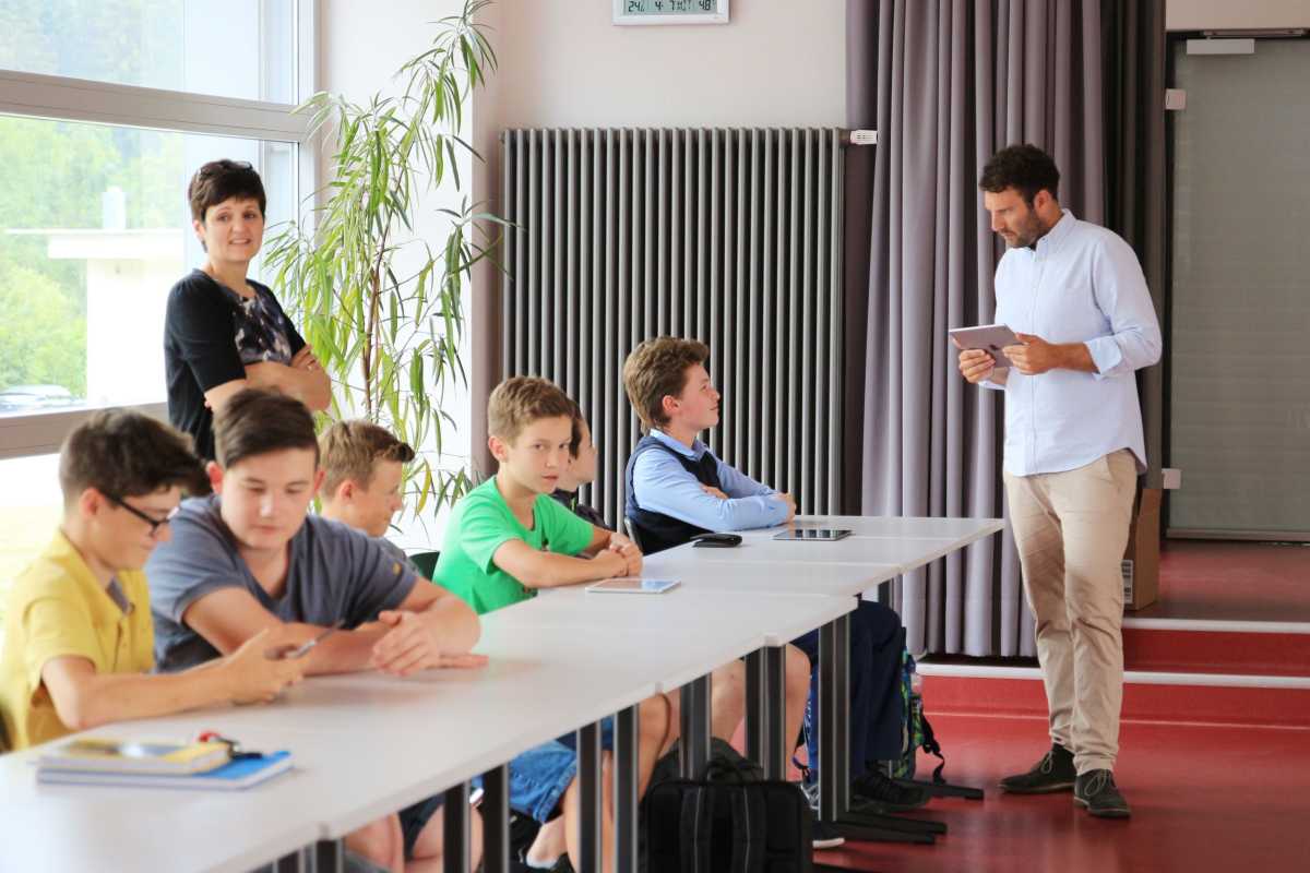 In der siebten Klasse waren Superhelden das Thema, die Sechstklässler beschäftigten sich mit Robin Hood und für eine elfte Klasse ging es darum, die Sprache von Donald Trump zu analysieren. Für alle Stufen gibt es in der Lernsoftware kurze Filmausschnitte, Texte oder Hörsequenzen, Verständnisfragen, oder Grammatikübungen als Multiple-Choice-Aufgaben und Lückentexte. Auch das eigene Sprechen kommt dabei nicht zu kurz und die Rolle des Lehrers ist dabei genauso wichtig wie bei der Nutzung analoger Materialien. Am Nachmittag stellte Ertmann das Material noch der Fachschaft Englisch vor.