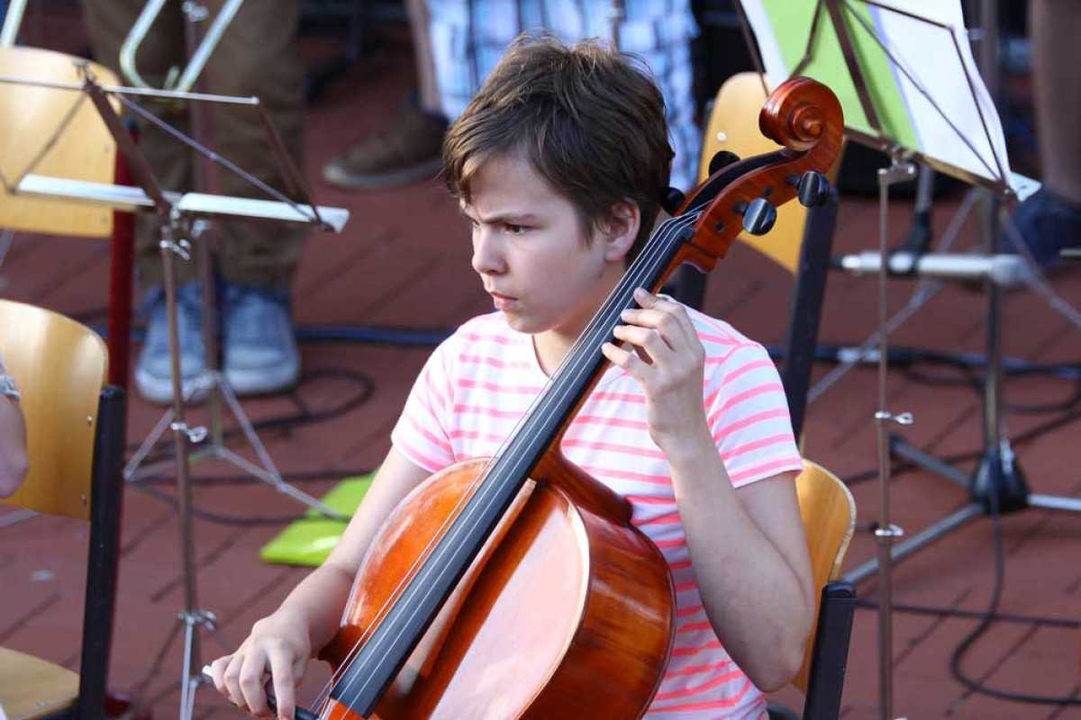 Ein lauer Abend, gut vorbereitete Musiker und viele Zuhörer – die Bedingungen für die Sommerserenade der Zinzendorfschulen waren perfekt. „Nichts ist schöner, als Musik für Publikum zu machen und zu sehen, wie sie den Menschen Freude macht“, sagte der Musiklehrer Br. Ziegler, unter dessen Leitung das einstündige Konzert unter freiem Himmel stand. Das Orchester der fünften Klassen machte mit einem Stück aus der Ouvertüre zu Rossinis Oper Wilhelm Tell, einem Brahms-Walzer und Beethovens Ode an die Freude den Auftakt. Die Sechstklässler hatten sich mit „Conquest of Paradise“, dem James-Bond-Thema und der Titelmeldodie aus „Fluch der Karibik“ ganz der Filmmusik verschrieben.Mit russischen Komponisten hatte sich das Schulorchester befasst und beeindruckte mit der energievollen Interpretationen russischer Tänze wie dem Trepak von Prosper Morand, Dmitri Schostakowitschs Walzer Nr.2 und einem Marsch und Trepak aus Peter Tschaikowskys Nussknackerballett.