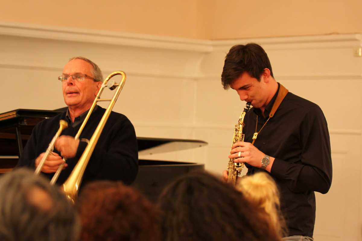 Die Mischung aus Moderne und Klassik zog sich wie ein roter Faden durch die gesamte Singstunde und erzeugte eine ganz besondere Spannung. Die Solisten Lennard Fiehn (Saxophon), Hans-Beat Motel (Posaune) und Br. Ziegler (Klavier) brachten immer wieder mit ihren jazzigen Einlagen eine frische Note in das abwechslungsreiche Programm.