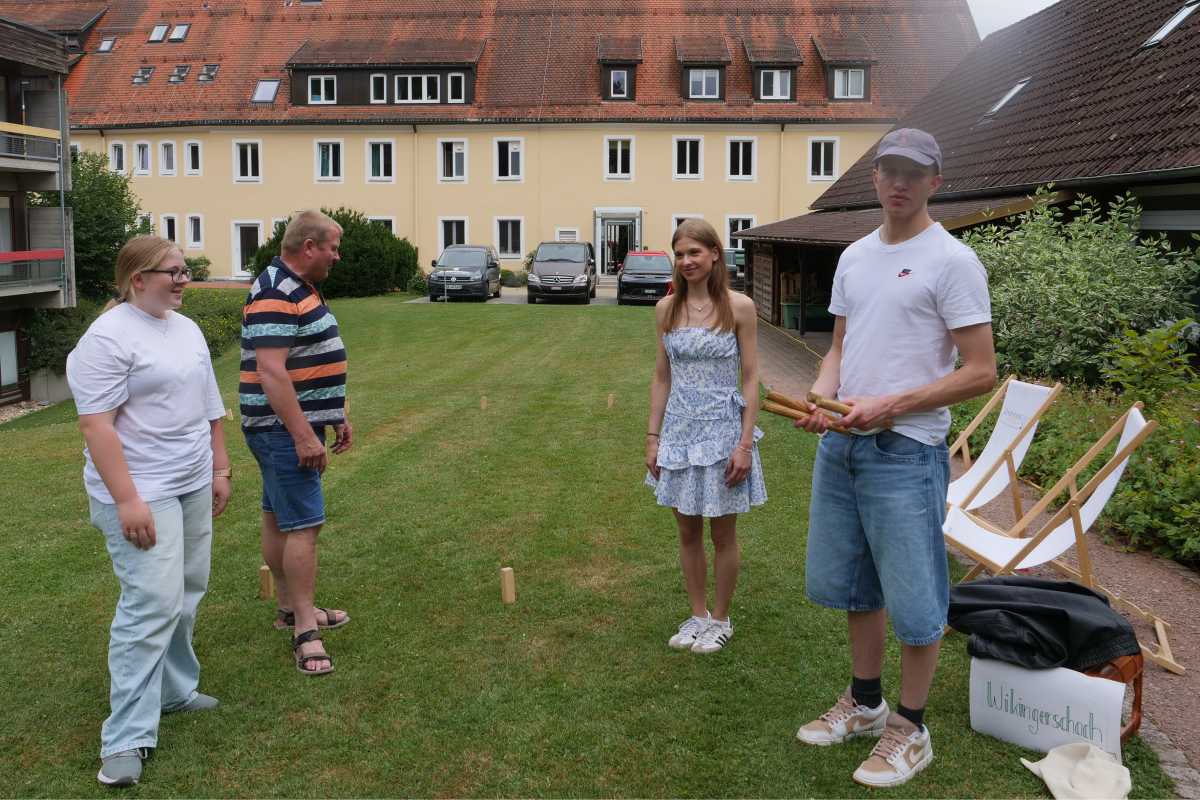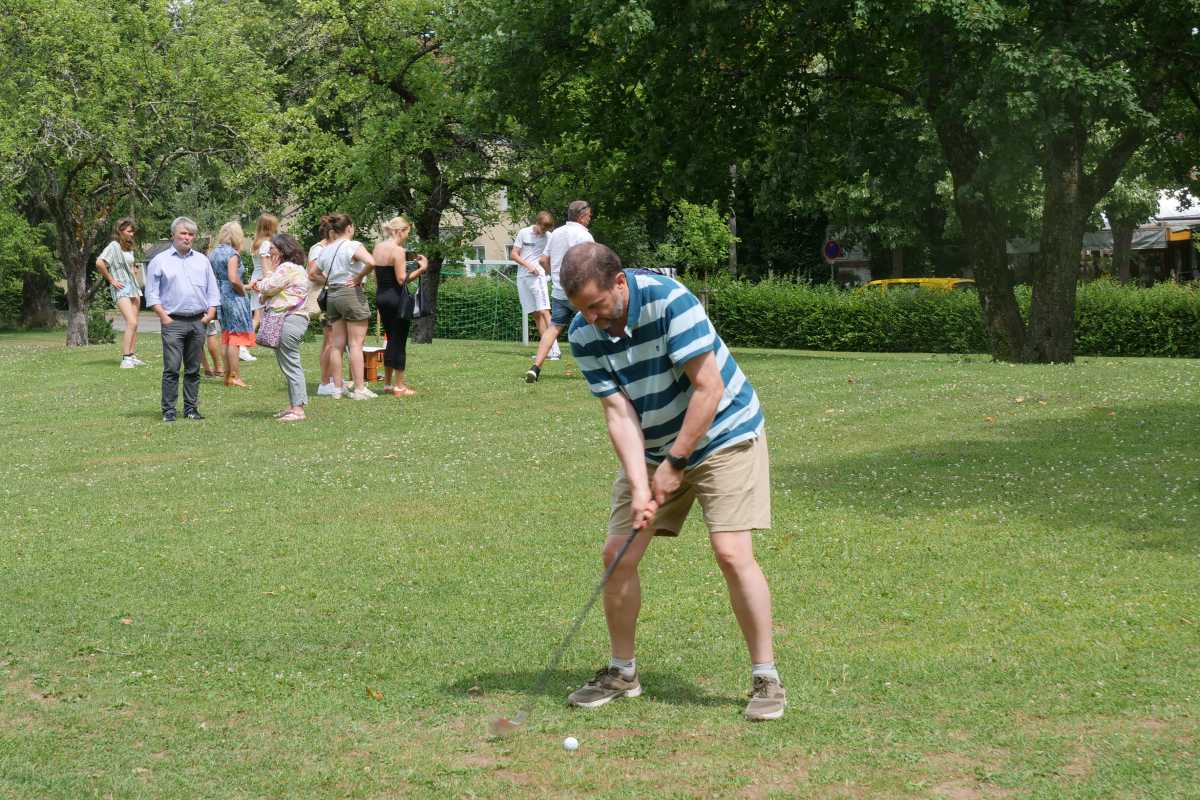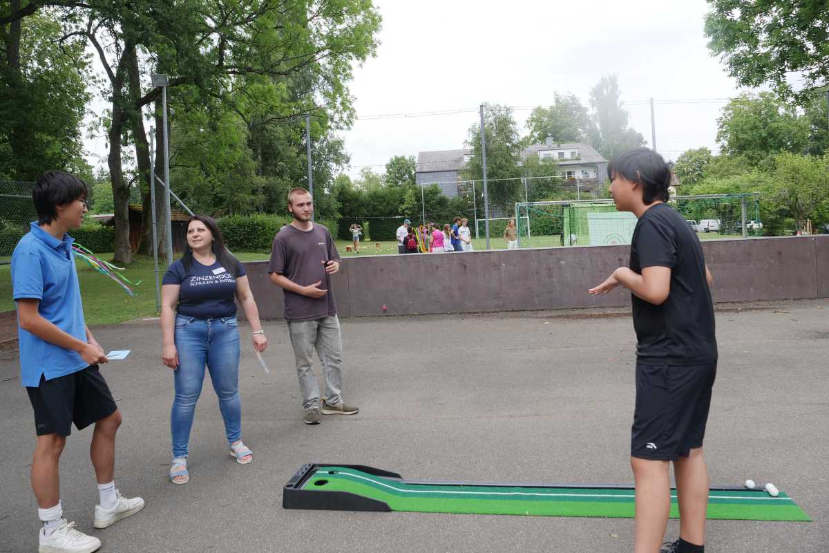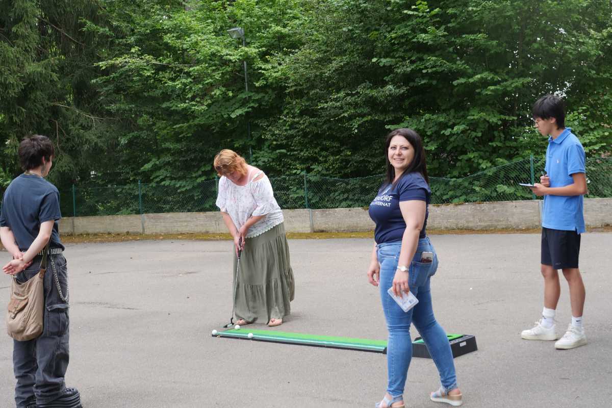 Anschließend wurde in geselliger Runde gegrillt. Eltern, Großeltern, Freund*innen und Bekannte unserer Internatler*innen konnten sich derweil bei verschiedenen Spielstationen sportlich und spielerisch messen: Wikingerschach, Cornhole, Putten, Golfschlagen, Eierlauf und Sackhüpfen sorgten für viel Spaß und gute Stimmung. Bei Kaffee und Kuchen wurden schließlich die drei erfolgreichsten Teilnehmer*innen prämiert.